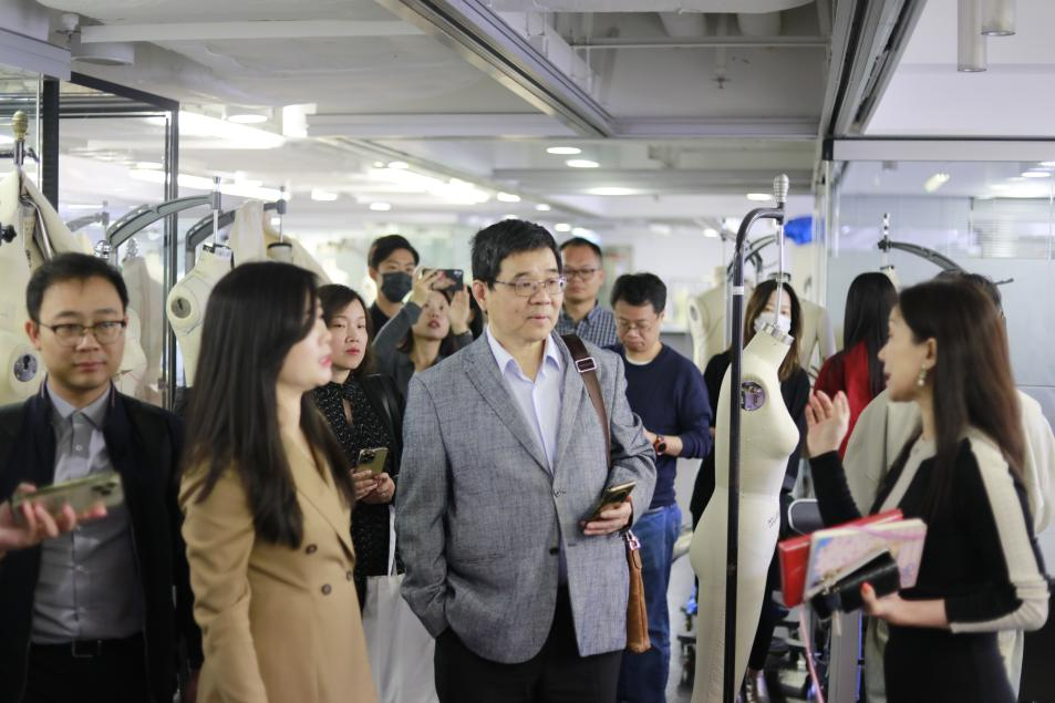 香港理工大学时装及纺织学院叶晓云副院长、简志伟副院长陪同参观服装专业实验室及展厅