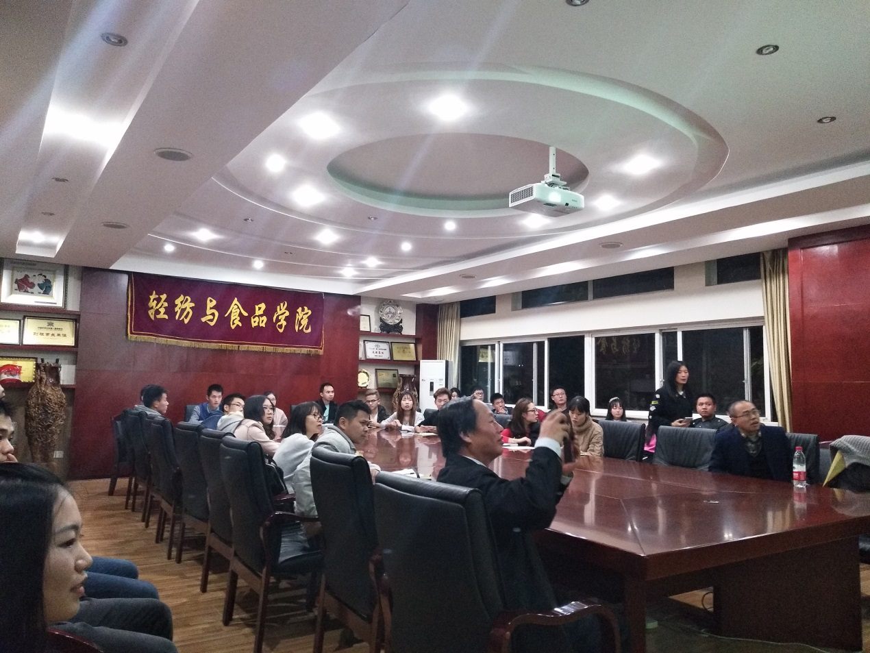 2017年10月20日晚上,四川大学高端外籍教师Didier Astruc院士在望江校区轻纺与食品学院皮革楼209会议室为我院硕、博士研究生作了题为“CLICK CHEMISTRY——FROM HUISGEN TO NANOSCIENCE”的学术讲座”。讲座由四川大学轻纺与食品学院硕士研究生李杨主持,学院何有节院长,辜海彬副教授、但年华副教授、金垚博士以及硕/博士生研究生约40余人聆听了Didier Astruc院士的精彩报告。