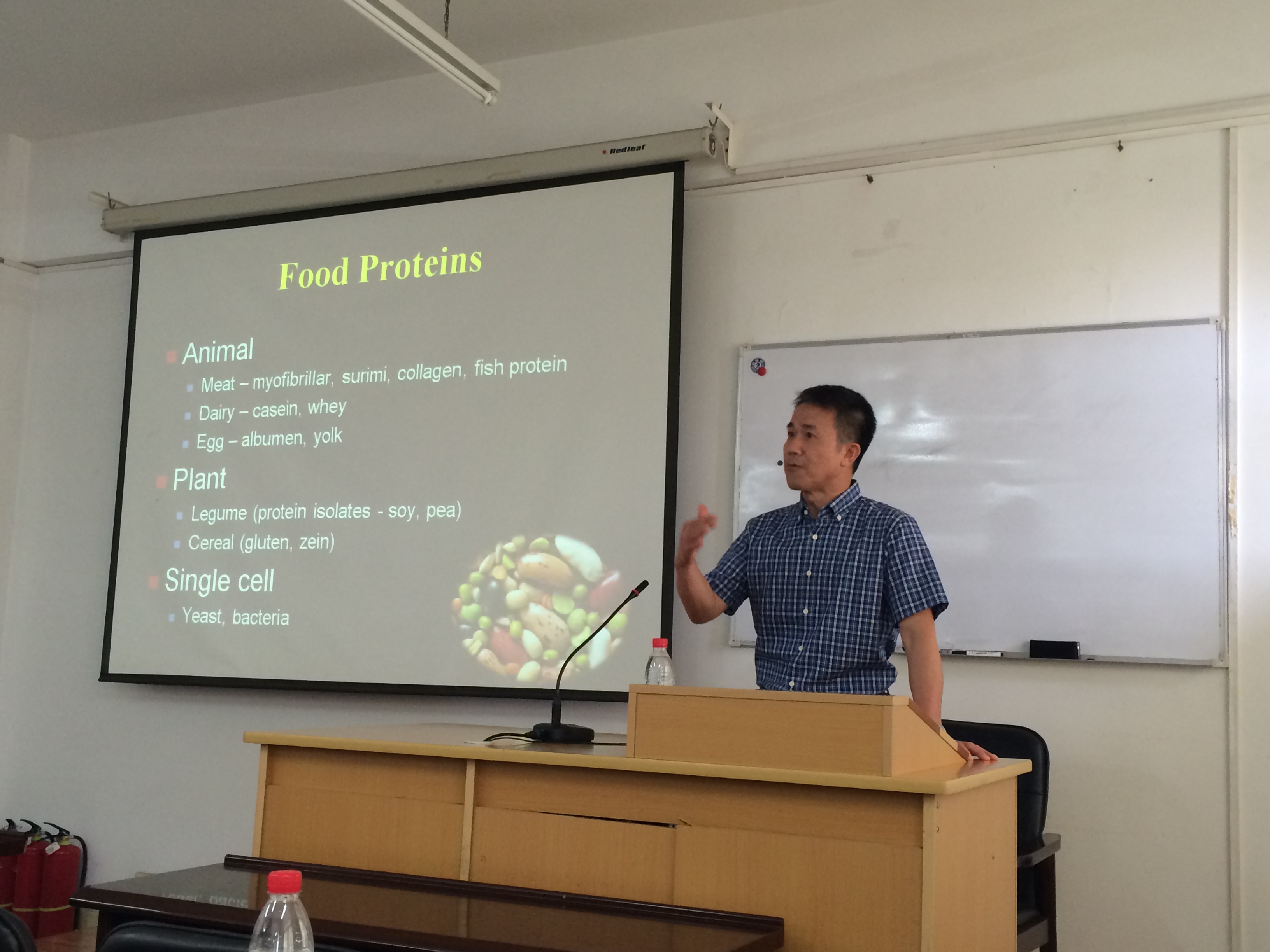 6月17日上午10点30分,国际知名蛋白质化学专家熊幼翎教授在四川大学纺工楼应邀发表题为“提高食品蛋白质功能的新技术”的学术报告,广大师生慕名而来,报告现场座无虚席,报告由食品工程系系主任何强教授主持。报告前期,熊教授简要地介绍了美国肯塔基州的文化、大学以及他的科研团队,他诙谐幽默的语言迅速使会场气氛轻松愉悦。随后,熊教授以独特的科学视角从蛋白质加工特性的角度出发,结合基础理论及最新的研究成果,从物理、化学、酶等几方面生动地讲述了几种提高食品蛋白质功能的新技术。其中,熊教授讲到他因在国际会议中受到启发,率先采用谷氨酰胺转胺酶(TGase)应用于肉制品加工中,利用TGase可催化体外多数蛋白质发生分子间或分子内交联反应的特性,提高产品的弹性及持水能力。他鼓励大家要保持同学、朋友和同事间的学术交流和互动,及时关注最新的学术动态,培养自身敏锐的学术嗅觉,大胆尝试,勇于动手。在最后的提问环节中,同学们踊跃提问,如:目前国际上对肉制品安全检测的新技术,多酚类物质在肉制品加工中的应用现状,如何提高撰写SCI文章的能力及录用率等问题,熊教授均耐心细致地为同学们一一解答。报告中,熊教授流利的口语、富有磁性的声音、挺拔儒雅的气质、深入浅出的讲述让大家如沐春风、受益匪浅,收获知识与开阔视野的同时更被熊老师深厚的学术积淀与个人魅力深深折服,此次报告在师生们热烈的掌声中结束。 资料链接: 熊幼翎博士现为美国肯塔基大学终身教授、江南大学特聘教授、美国食品科学家联合会(Institute of Food Technologists)会刊《Journal of Food Science》副主编,先后获得美国肯塔基大学杰出研究科学家奖、美国肉品科学协会杰出研究奖、杰出成就奖、美国化学会青年科学家奖、瑞典皇家农林科学院Bertebos奖等多项学术奖励,是国际知名的食品蛋白质化学及应用领域的权威专家。