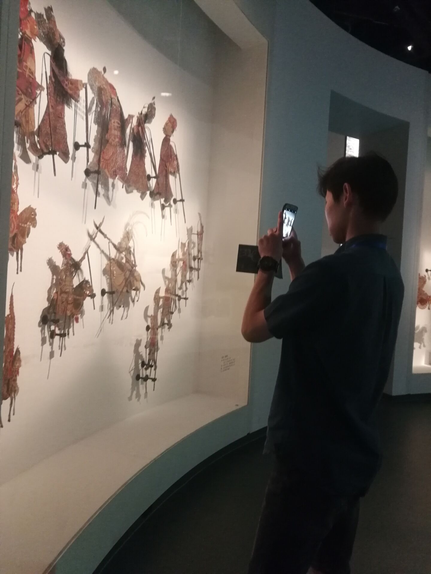 交流生在皮影馆内拍照留念