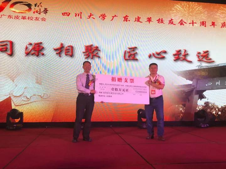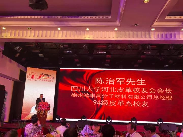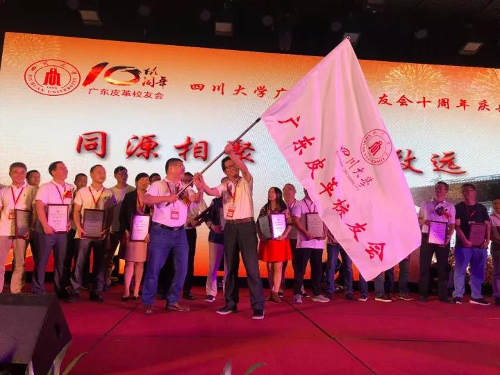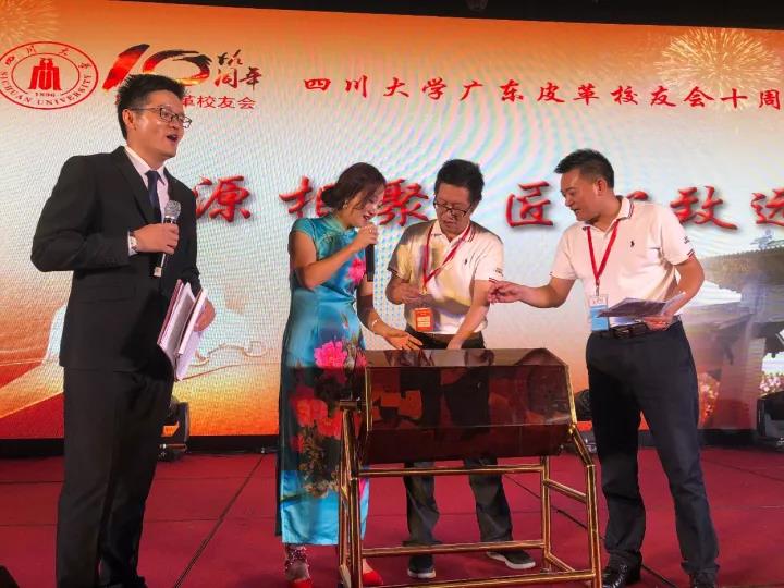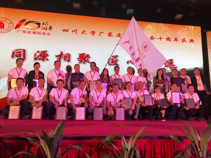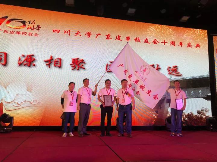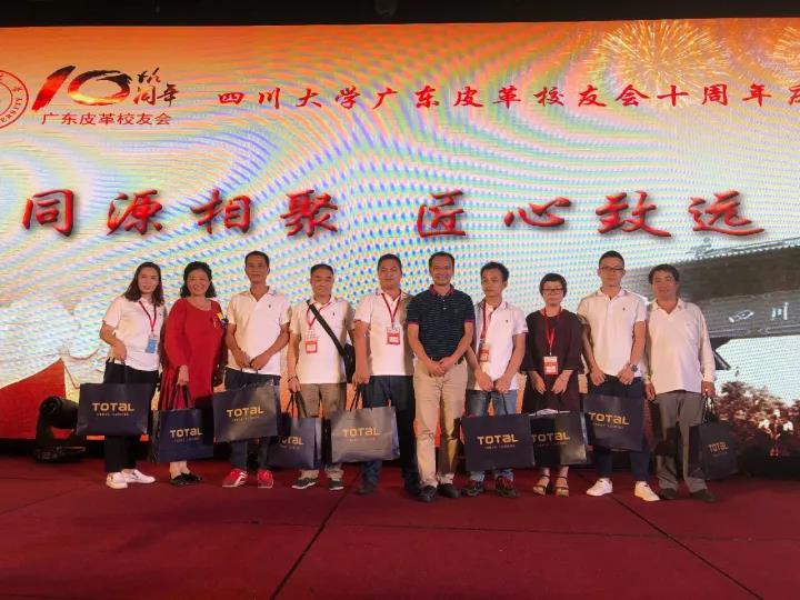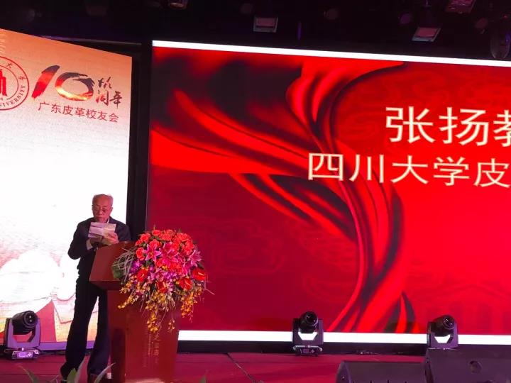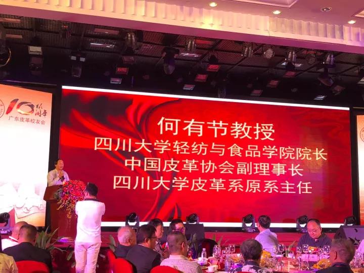 2017年11月12日,四川大学广东皮革校友会举行盛大庆典,隆重庆祝该会成立十周年。校党委副书记、副校长李向成教授,原校党委副书记、原副校长李志强教授,学院党政班子代表何有节、彭必雨,生物质与皮革工程系班子成员代表程海明、林炜、周建飞、杨璐铭以及张扬、廖隆理、杨淑娟、张廷友、周华龙、兰先琼、陈武勇、李正军、徐波、邱华军、黄钧等教师代表出席了本次庆典,与行业嘉宾和校友们共同庆贺并见证广东皮革校友会在新时代的再次扬帆启航。庆典过程中,学校党委副书记、副校长李向成教授,学校原党委副书记、原副校长李志强教授,皮革系张扬教授,中国皮革协会,学院及生物质与皮革工程系,教师代表,校友代表,兄弟院校嘉宾代表,兄弟校友会嘉宾代表,行业嘉宾代表等先后致辞祝福;举行了广东皮革校友会第三届校友理事会和各分会理事会的成立仪式;新任会长倪建荣先生以个人名义向四川大学生物质与皮革工程系、皮革化工与工程教育部重点实验捐赠10万元,用于皮革英文期刊办刊;最后的集体祝酒、歌舞表演和抽奖活动把庆典活动推至一个又一个高潮。