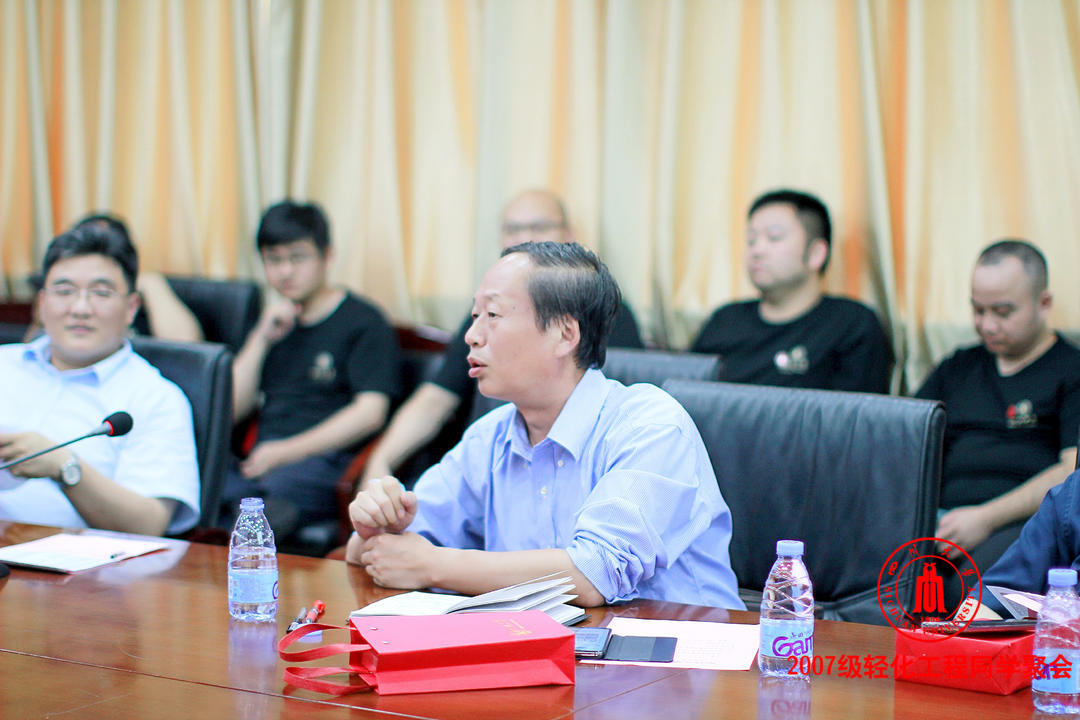 时任2007级轻化工程院领导及老师作了精彩发言,陈武勇教授深情回忆当年鞣制化学创精品课程时师生共济的历历情景。张宗才教授讲述了“同学情”的准确定义。李正军教授回忆当时导师生涯。彭必雨教授讲述上课时关于“俯卧撑”的趣事,并现场“点名”。副院长肖凯倡议各位校友不管事业成就如何,常回母校看看、回母院坐坐。林炜教授、廖学品教授、戴红副教授、院长助理祝蔚等亦作精彩致辞。