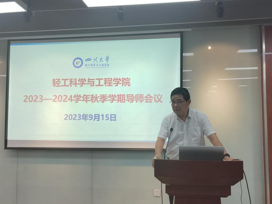 为明确班主任、导师工作职责,见面会前,学院举行了全体导师会议。彭必雨院长向全体导师传达了学校和学院新学期工作部署安排,并就2023级本科生导师制提出了工作要求。冯国涛副书记全面介绍了学院本科生近年培养情况、2023级本科生录取情况以及导师的主要内容,并希望全体导师密切加强和辅导员、班主任工作联动,深入落实“爱生如子”的工作要求,助力每一位“轻工学子”成长成才!
