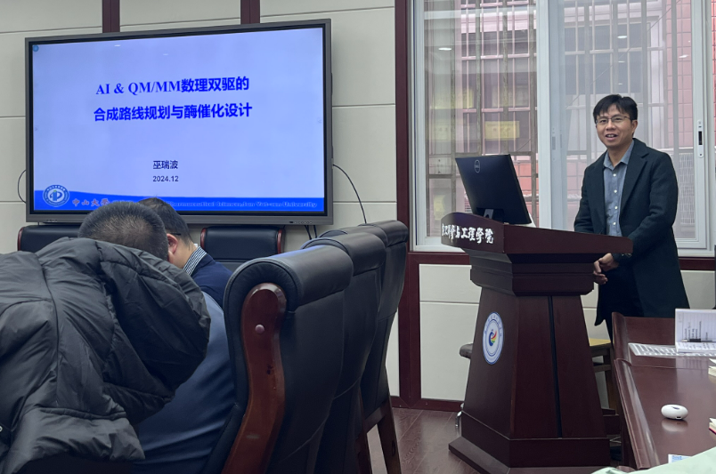 国家级青年专家、中山大学药学院巫瑞波教授作题为“AI& OM/MM数理双驱的合成路线规划与酶催化设计”的报告。报告中,巫瑞波老师介绍了利用人工智能(AI),量子-经典(QM/MM)力学、多尺度模拟技术、大数据挖掘和深度学习策略相结合的创新方法,推动了天然产物的合成路线规划和酶催化设计。特别是在酶改造方面,研究团队发现通过理性设计,单一突变的酶变体能够实现催化功能的完全转变,这是非理性设计难以达到的,为天然产物合成中的关键酶改造提供了全新的视角和理解。