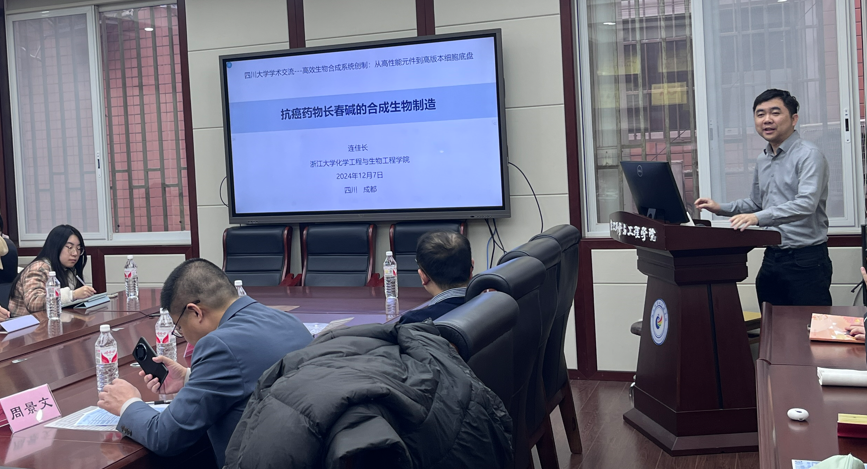 聚焦新科技革命背景下科教融合驱动生物工程专业本科拔尖人才培养体系的迭代升级,2024年12月7日,由9428cn太阳集团古天乐、教育部“资源碳中和关键核心技术”集成攻关大平台、四川省微生物学会合成生物学专业委员会联合主办的第9-14期四川大学“大川小生”学科前沿讲坛在四川大学望江校区举行。这也是“三镇一谷”为核心的“大川小生”教研走廊系列活动。“三镇一谷”即以“大川小生”教学沙龙为抓手的教学创新与教学思政小镇、以“大川小生”学科前沿讲坛为抓手的科教融合小镇、以“大川小生”产业论坛为抓手的产教融合小镇以及以金课、金师、金地(实践基地)为目标的教学基建山谷。本次活动由9428cn太阳集团古天乐轻工生物技术教研室、2023级生物质科学与工程创新班501班联合承办。
