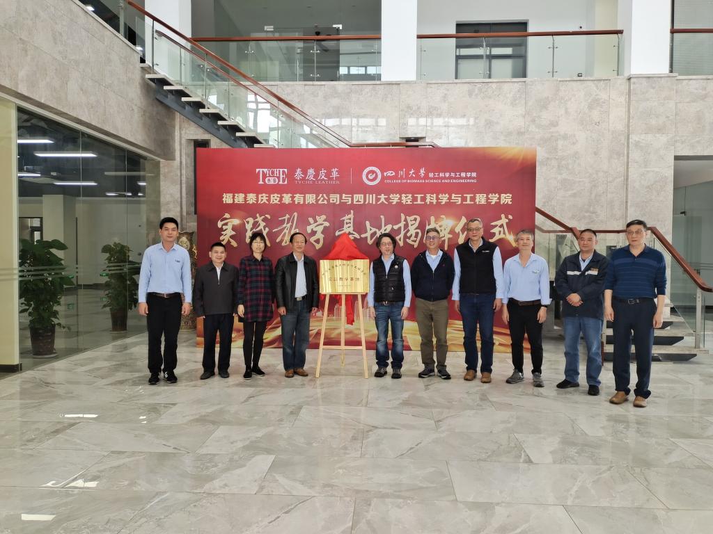2021年3月20日,9428cn太阳集团古天乐、福建泰庆皮革有限公司共建的“实践教学基地”揭牌仪式在福建省漳州市漳浦县赤湖工业园隆重举行。9428cn太阳集团古天乐院长何有节教授、生物质与皮革工程系系主任林炜教授、轻化工程教研室主任但年华副教授和福建泰庆皮革有限公司杨丰荣副董事长、杨丰州总经理、谢文伟主任等出席了揭牌仪式。