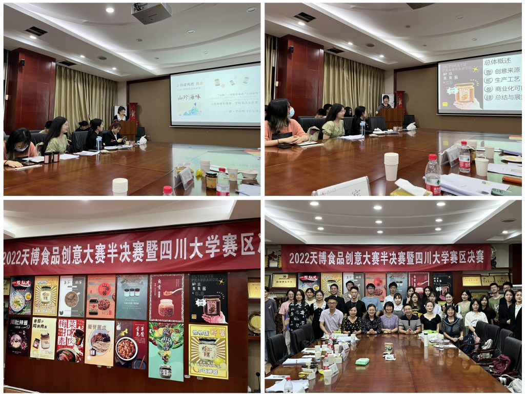 2022年5月12日,由中国调味品协会和山东天博食品配料有限公司联合举办的2022年天博食品创意大赛半决赛暨四川大学赛区决赛在四川大学望江校区皮革楼209会议室隆重举行。本次大赛由四川大学食品工程系系主任吕远平教授、副系主任曾维才副教授以及食品工程系贾利蓉教授、任尧副教授、段飞霞老师担任评委。