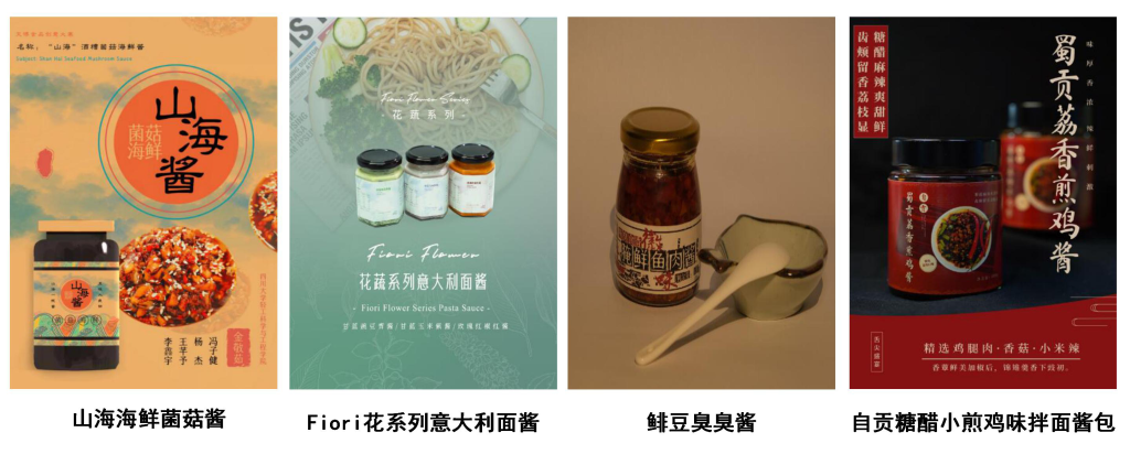 本次大赛旨在促进校企双方食品研发人才培养和技术交流,为在校大学生提供实践锻炼平台,提升大学生自主创新能力,促进理论知识向实践能力的有效转化。比赛中,评委老师们从“创新概念”、“市场潜力”、“技术可行性”、“口感风味”和“包装设计”等5个方面对参赛作品进行了综合评价与考核。经过激烈角逐,最终遴选出“山海海鲜菌菇酱”“Fiori花系列意大利面酱”“极致之香——鲱豆臭臭酱”和“自贡糖醋小煎鸡味拌面酱包”四个作品成功晋级全国总决赛。