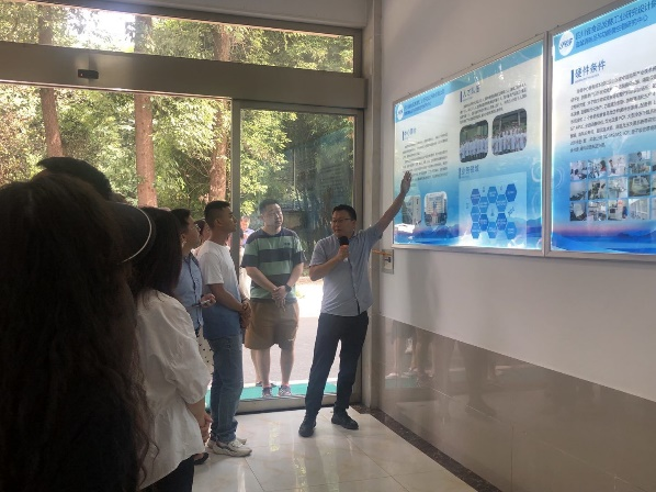 首先,在讲解员的带领下,参观了泡菜发酵中试线。讲解员首先详细地介绍了“功能菌发酵泡菜全自动生产技术应用与示范”项目中已筛选适用于鲜泡泡菜发酵、安全性高、具有益生特性的功能菌,以及功能菌高密度培养装置;并针对四川鲜泡泡菜全自动中试生产线及配套生产工艺进行了详细的讲解。