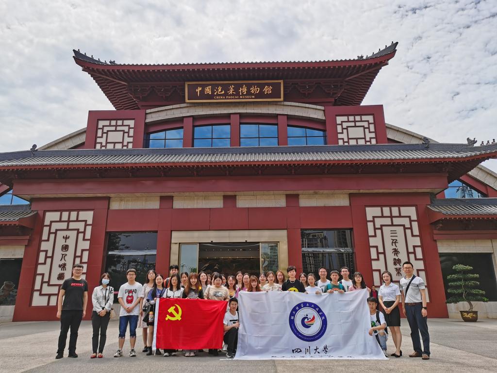 四川眉山“中国泡菜城”是全国第一个规模最大、功能最全、工艺最新的泡菜产业园区,规划面积17.94平方公里,汇聚以泡菜为代表的传统发酵食品,调味品等数十家企业,园区企业年产值已逾300亿元。川大团队上午首先调研了惠通食业有限责任公司,参观了乌江榨菜自动化加工生产线,由衷感叹传统发酵食品生产与现代智能化生产技术结合后的跨越式发展;考察了老坛子食品有限公司,参观了泡菜老母水古法发酵制作技艺,被我国传统发酵食品生产技术的博大精深所吸引。随后团队参观了中国泡菜博物馆,它是全国唯一的以泡菜为主题的博物馆。通过讲解员系统全面的讲解,同学们了解到中国泡菜的起源、泡菜文化与泡菜产业发展历程,深刻到发酵食品传统加工技术的发展与进步不仅是制作技术的延续和拓展,更是中华文化的传承。