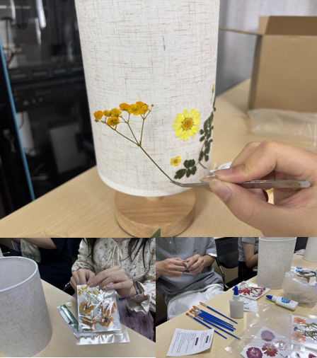 在实践环节,支部党员积极投入到创意压花台灯制作中,在动手实践中沉浸式感受艺术之美,厚植文化自信。大家互相探讨设计理念,分享创意灵感,以花为笔,通过艾草、菖蒲等端午元素植物与花材的排列组合,一盏盏独具匠心的台灯一一成型。当灯光点亮的那一刻,柔和的灯光与压花图案交相辉映,象征着传统文化在新时代绽放的璀璨光芒。