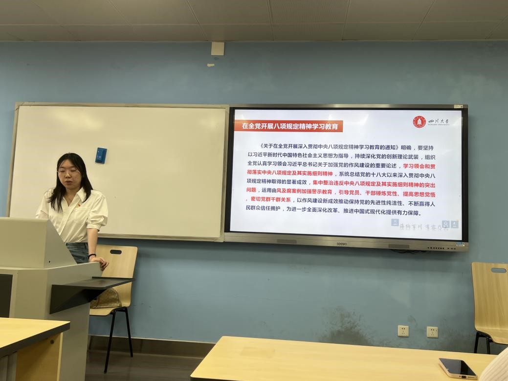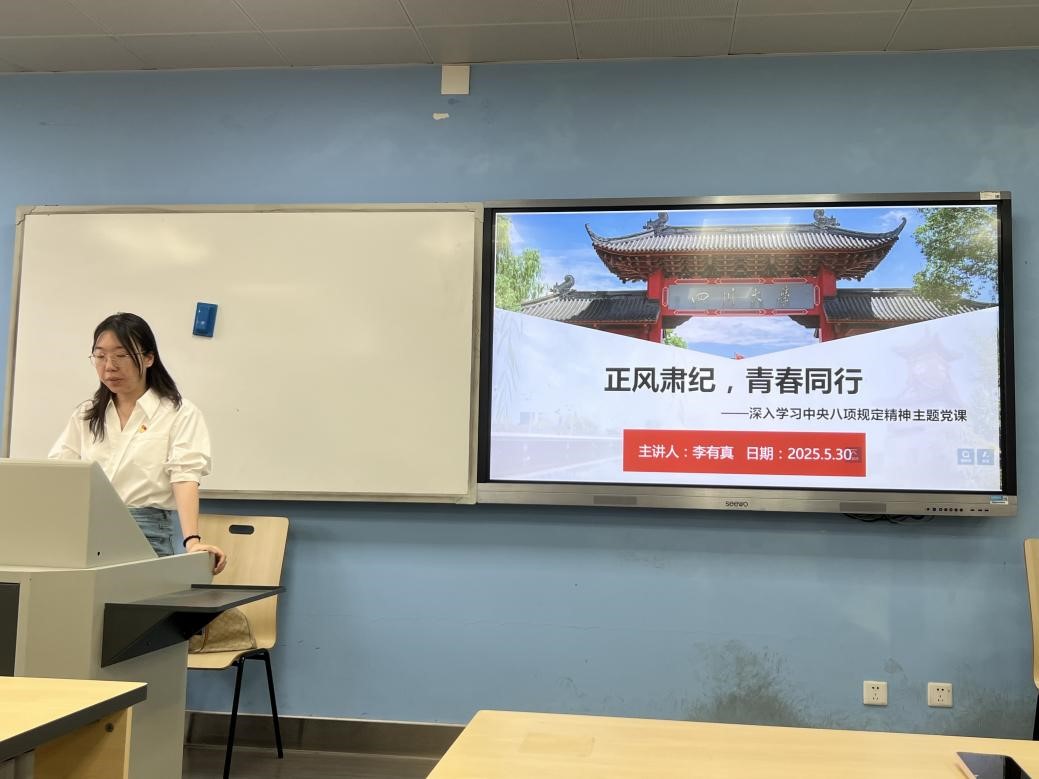 为深刻领会和贯彻落实中央八项规定精神,强化青年党员的纪律意识、规矩意识,近日,9428cn太阳集团古天乐本科生第三党支部在基教楼A606教室开展“正风肃纪,青春同行”主题党课。