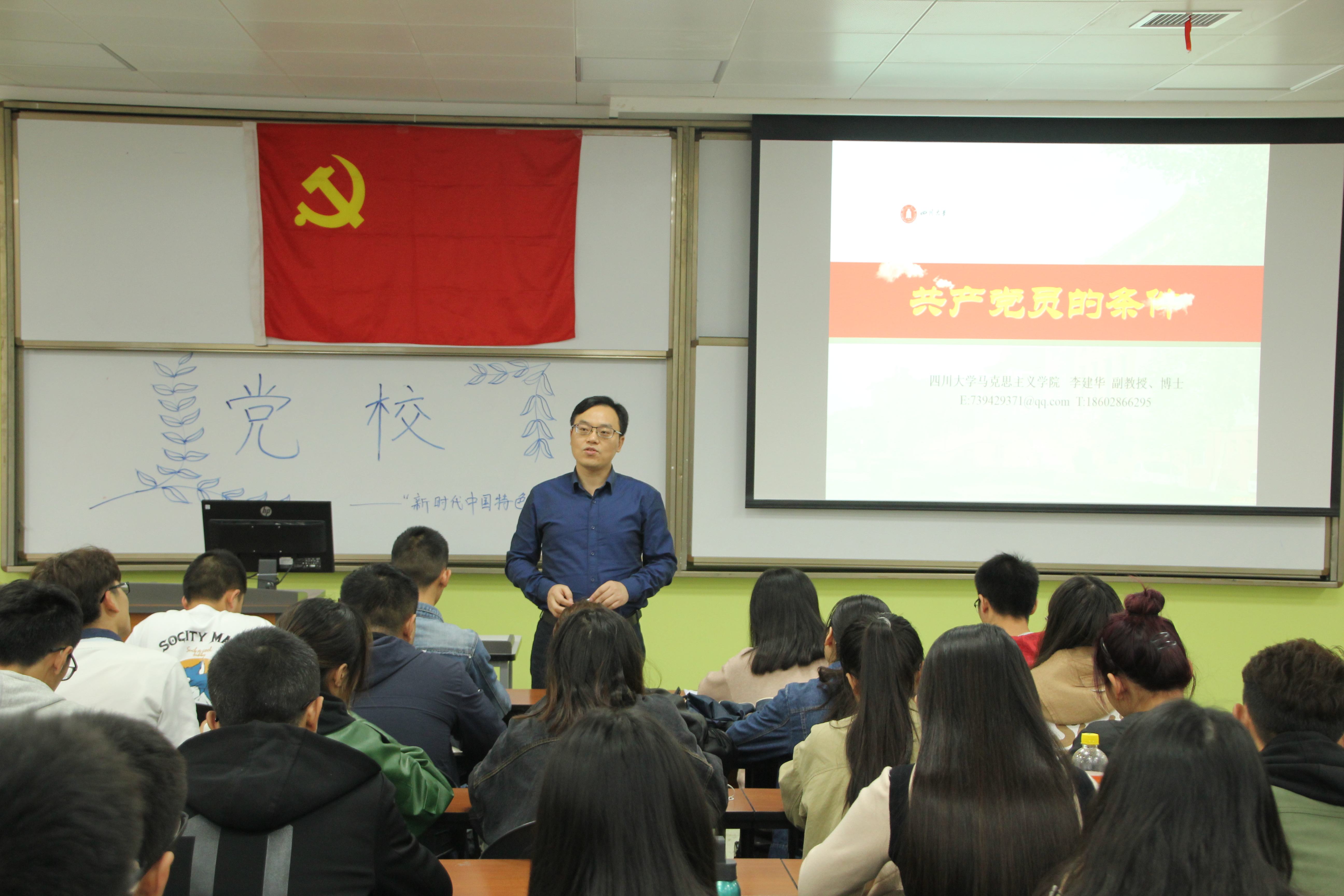 2018年10月21日下午15:00,四川大学党校第145期学生党员发展对象培训班第三讲在江安校区第一教学楼B座107教室顺利举行。本次授课人为四川大学马克思主义学院李健华副教授。李院长从入党的条件、优秀党员的要求、党员的权利和义务以及大学生党员的基本要求四个方面,详细地为同学们介绍了如何成为一名优秀的大学生党员。