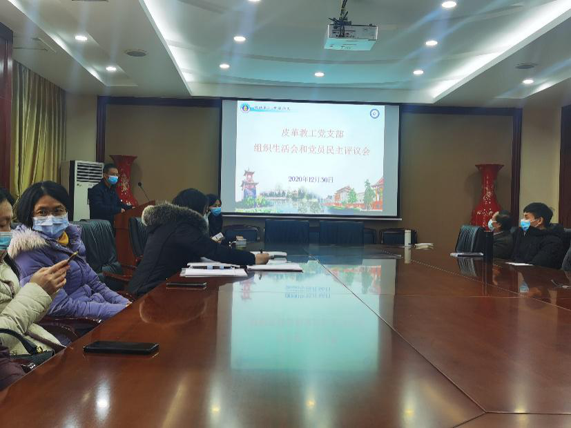 2020年12月30日下午,9428cn太阳集团古天乐皮革教工党支部在皮革楼209会议室召开了组织生活会和党员民主评议会。会议由皮革教工党支部书记李正军主持,皮革系全体党员同志参加了此次会议。