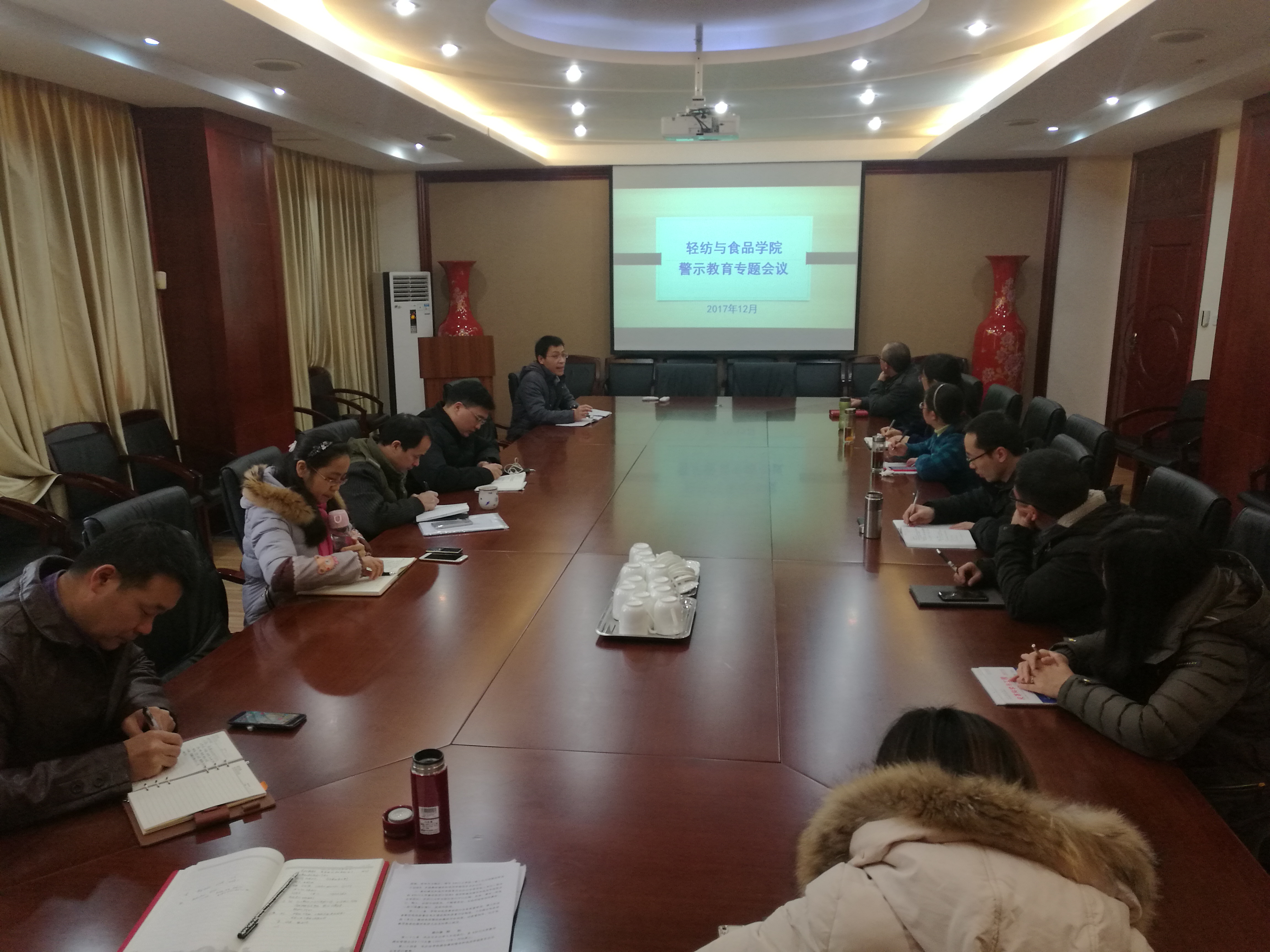 轻纺与食品学院党风廉政教育专项警示教育会议于2017年12月27日上午9:30在皮革楼209会议室举行。参加本次会议的有学院中层领导班子、党委委员、纪委委员、教职工党支部书记以及系所负责人。