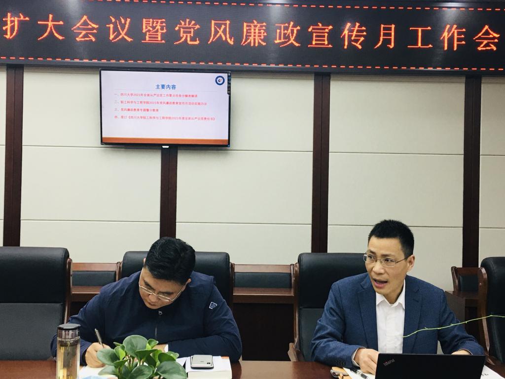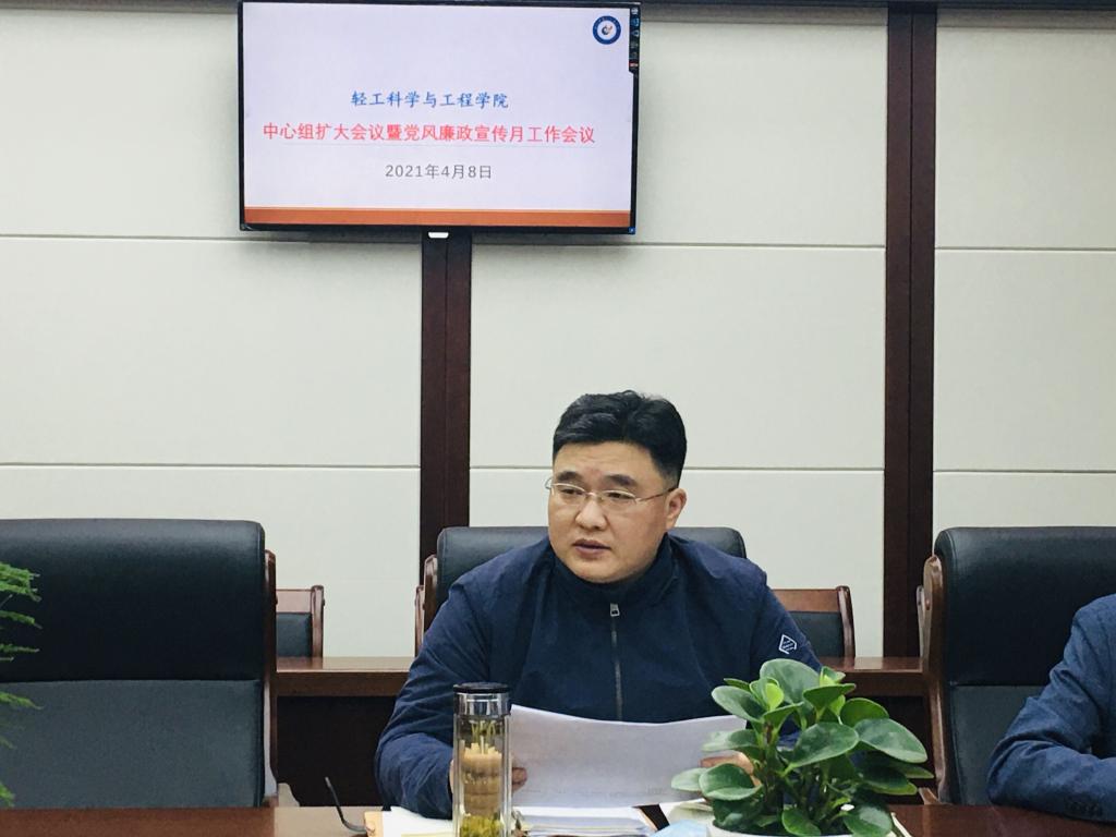 2021年4月8日上午,学院在纺工附楼205会议室召开理论学习中心组扩大会议暨党风廉政宣传月工作会议。学院领导班子、两委委员、组织员、教职工党支部书记及科级干部出席会议。会议由刘晓虎书记主持。