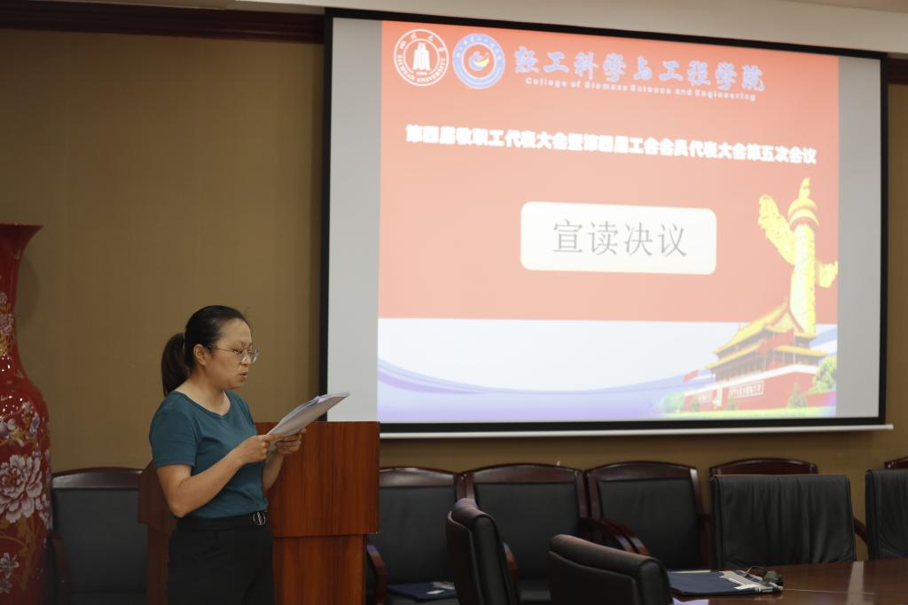 学院工会副主席肖红艳同志宣读决议