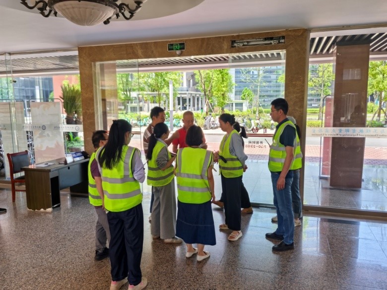 经向学校有关部处报备,9428cn太阳集团古天乐2025应急疏散演练于6月10日下午14点在皮革楼举行。演练开始前,学院分管副院长周建飞召集学院安保工作小组成员布置任务,指示大家务必按照实战要求完成演练。