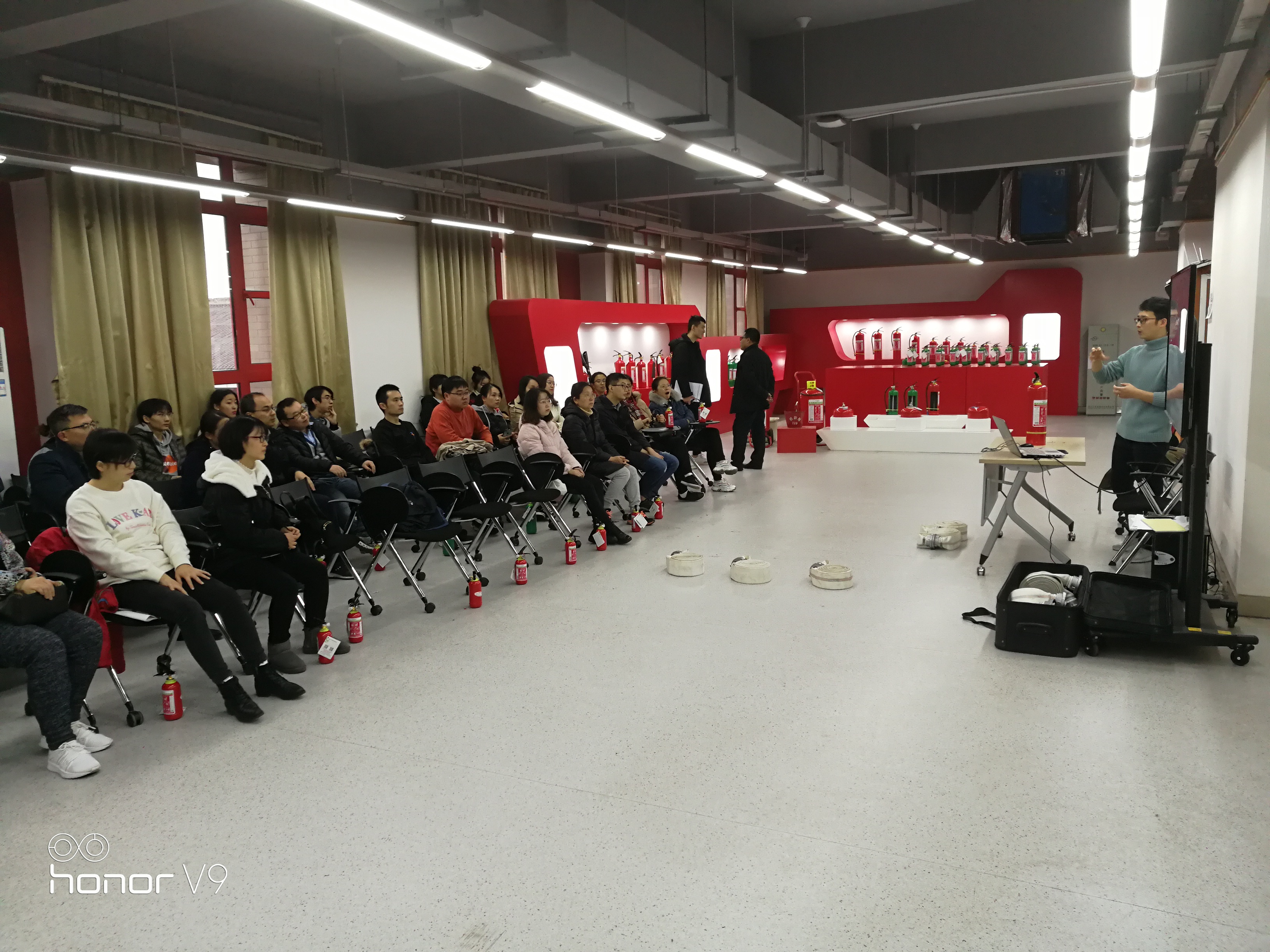 培训教师详细介绍了火灾的发生发展过程、灭火器的种类、灭火器是否有效的判断、正确使用灭火器扑救初期火灾的方法、消防栓的位置及使用、消防面具的使用、火灾报警、火场逃生等相关知识,全体参训人员进行了灭火和应急逃生实操演练。