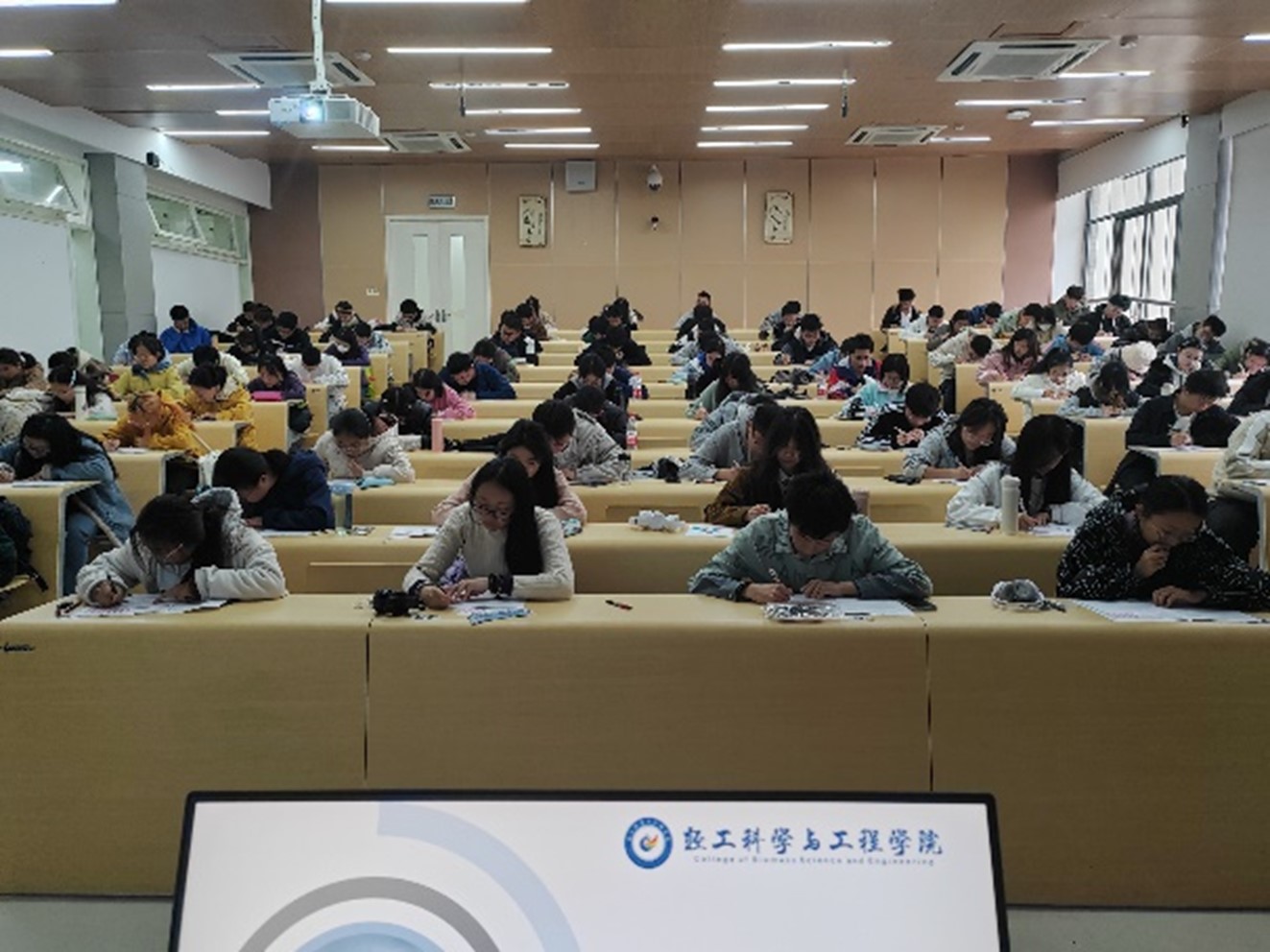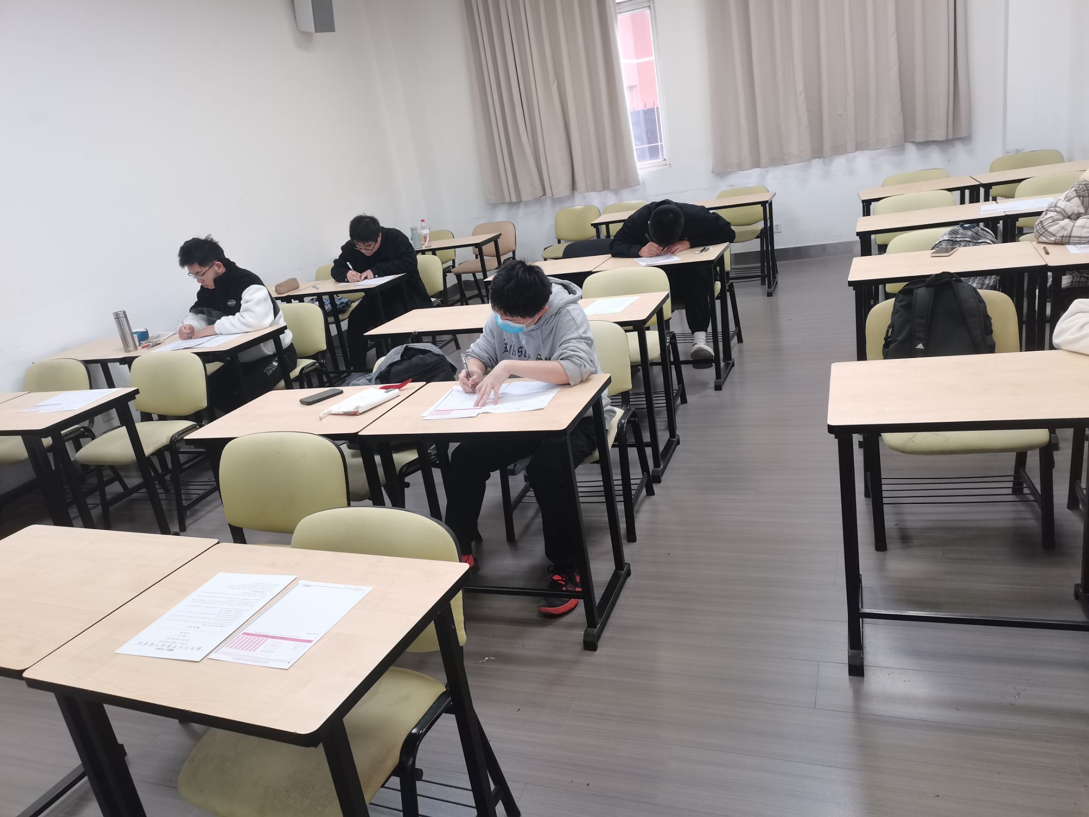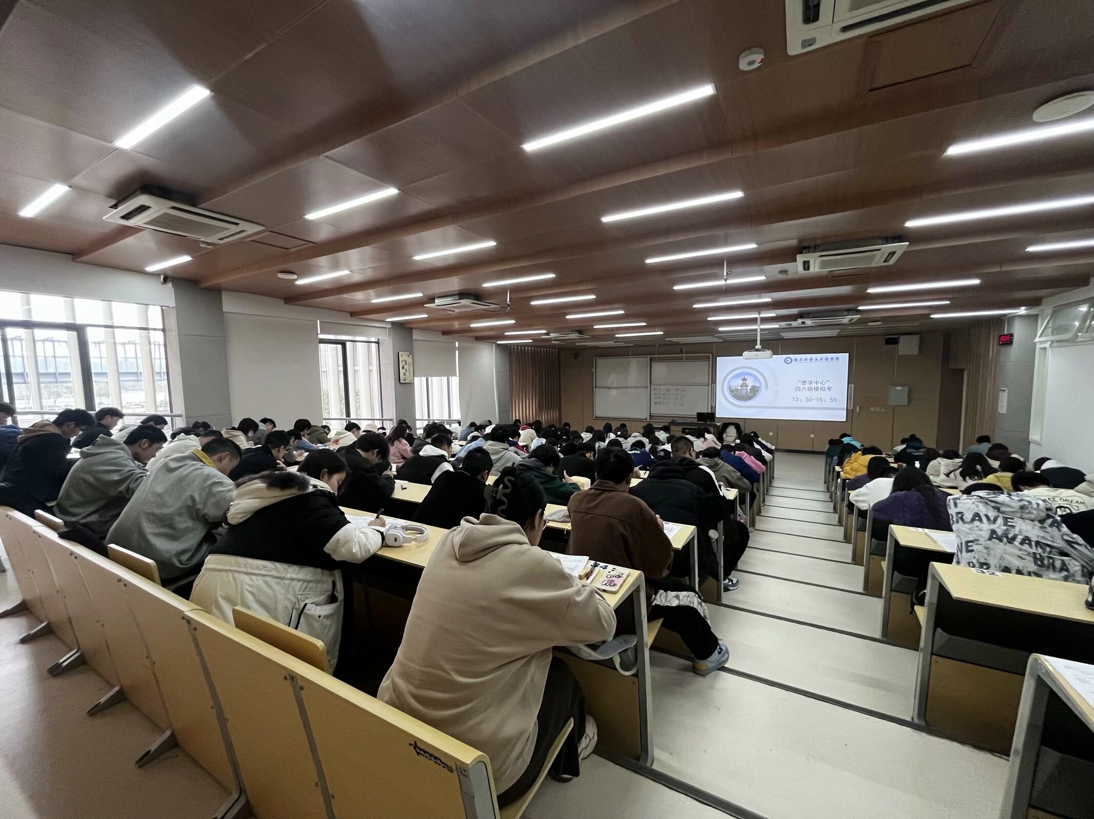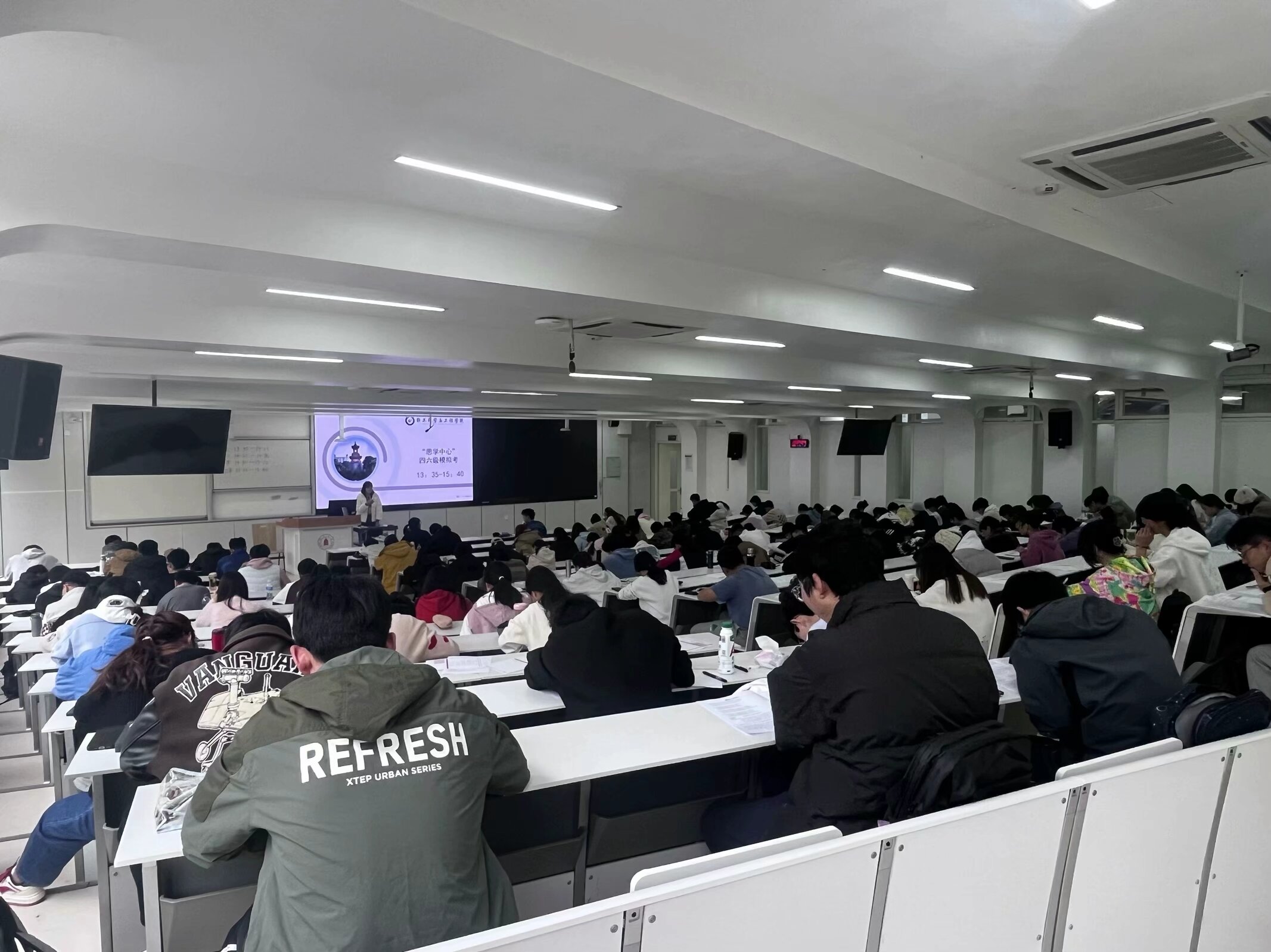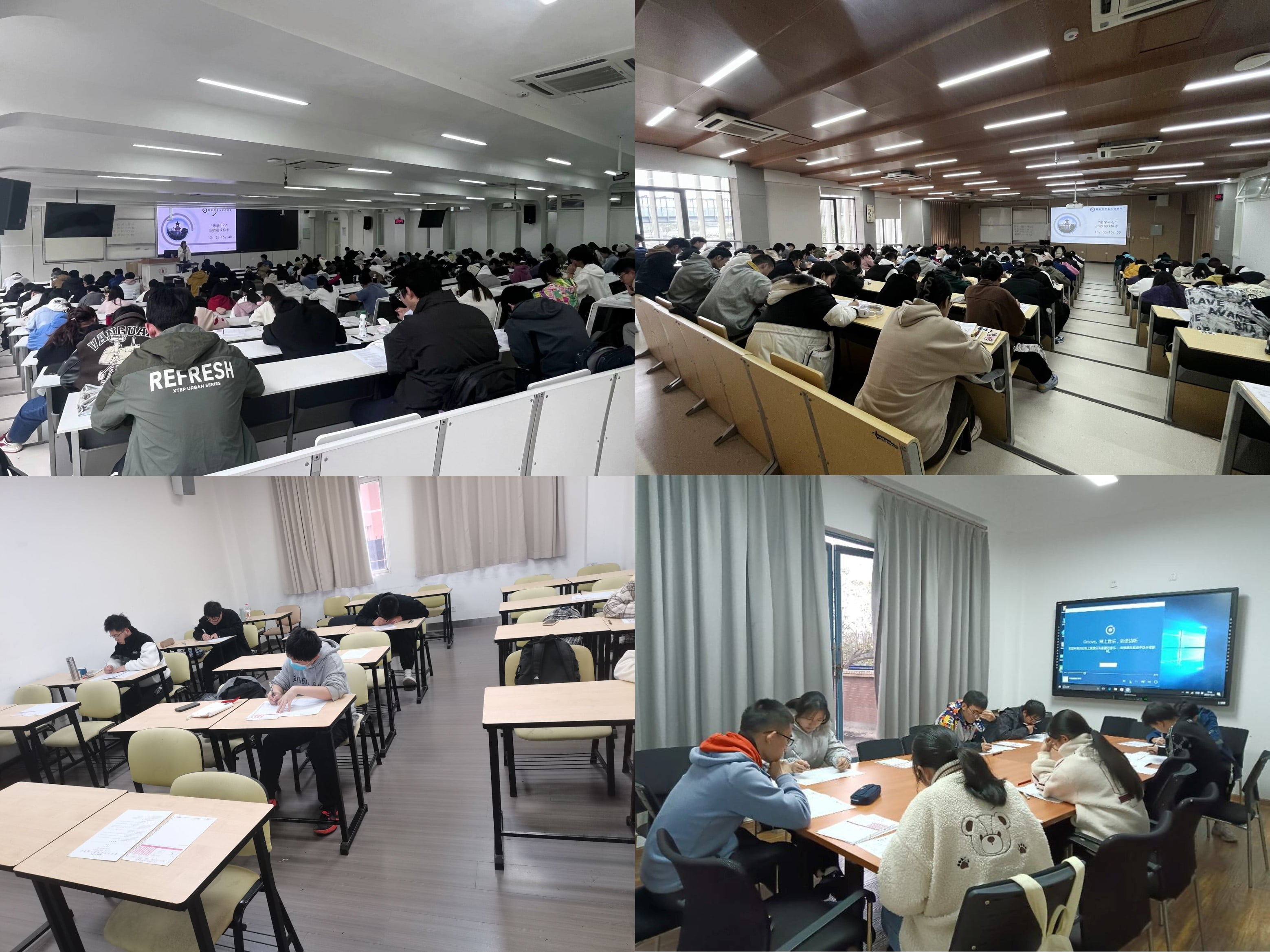 本次模拟考严格遵循全国大学英语四六级考试标准。模拟考试开始前,思学中心工作人员认真进行考场布置、听力设备试音以及试卷整理发放等。考试过程中,考生们间隔就坐,认真审题,严谨作答。监考员认真履行职责,确保考试的规范性、成绩的真实性。考试结束后,工作人员发放参考答案,考生有序离场。