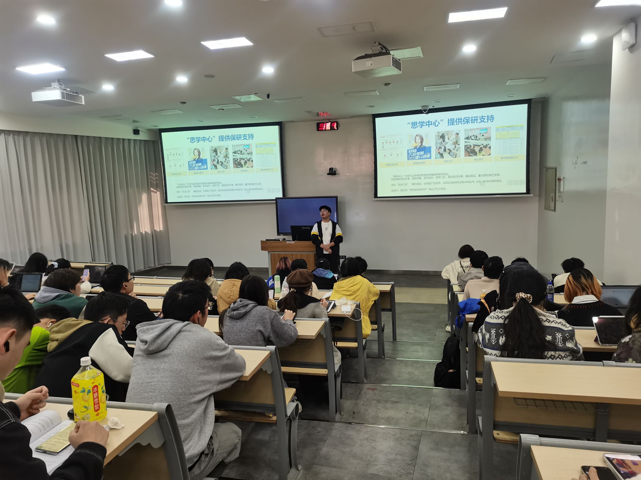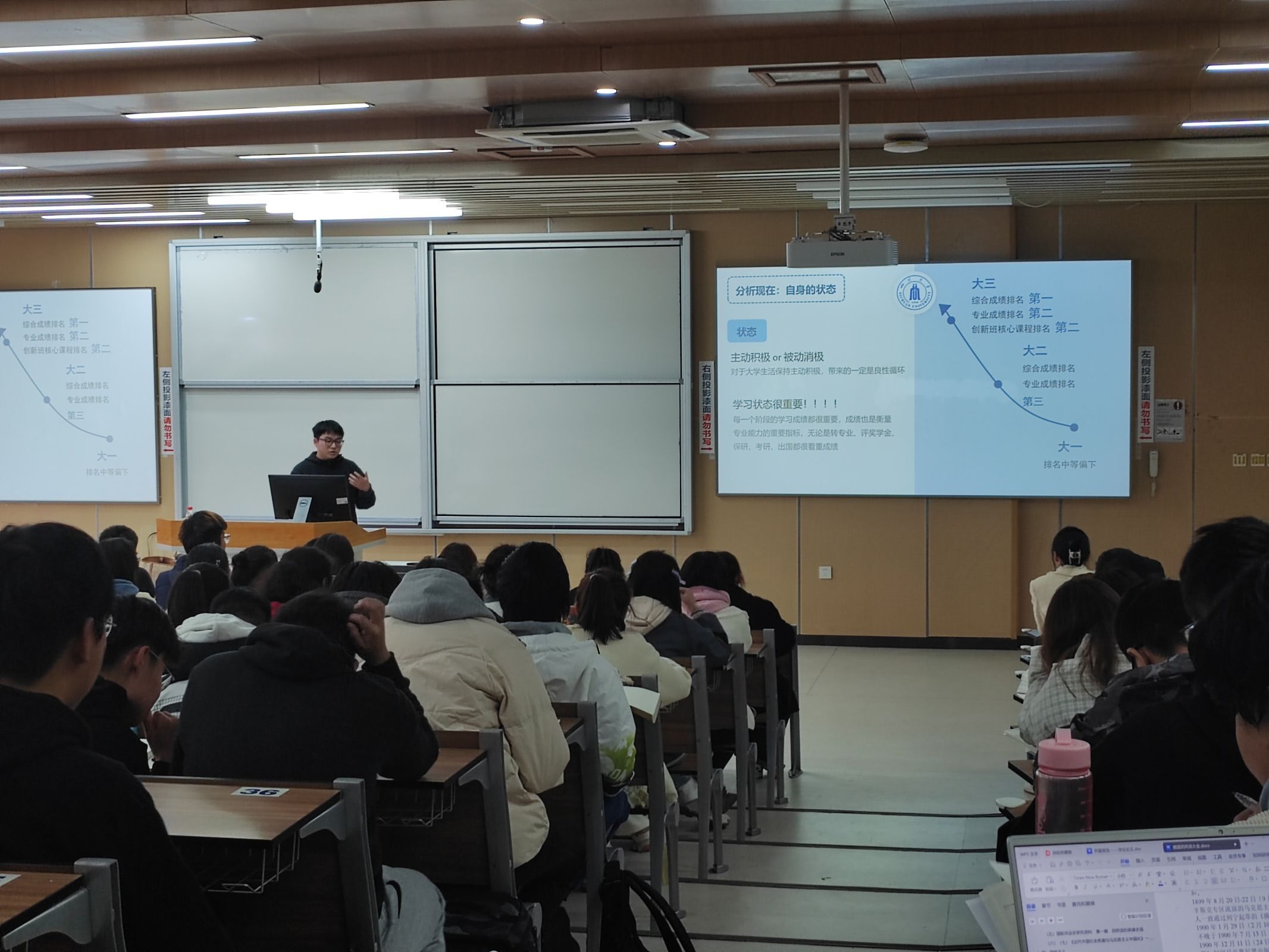 为进一步营造良好班风学风,更好帮助学生进行学业规划和职业生涯规划,2023年11月17日下午,9428cn太阳集团古天乐思学中心针对各年级学生的思想、学习特点分别在江安和望江校区开展职业生涯规划分享会。