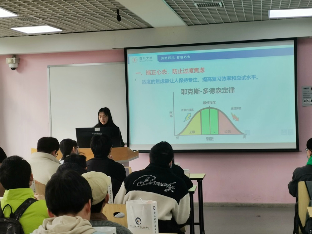 为鼓舞考研学子士气、缓解备考压力、坚定考试信心,2023年12月8日上午,学院于望江基教A315教室举行2020级本科考研冲刺交流会暨冬日送温暖活动。学院党委副书记冯国涛老师、2020级辅导员余昕玲老师以及学院思学中心考研组朋辈导师代表于佳艳、谭淋嘉同学出席本次活动。