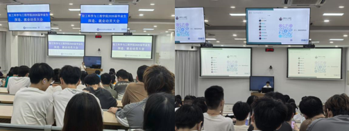 王舒灏老师介绍了毕业年级深造和就业的时间节点,分析了当前面临的机遇和挑战,敦促同学们要抓紧时间,尽快明确未来发展方向,并制定切实可行的行动计划。