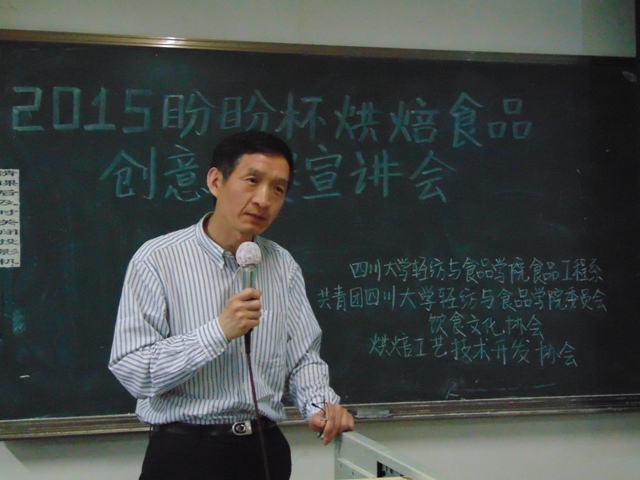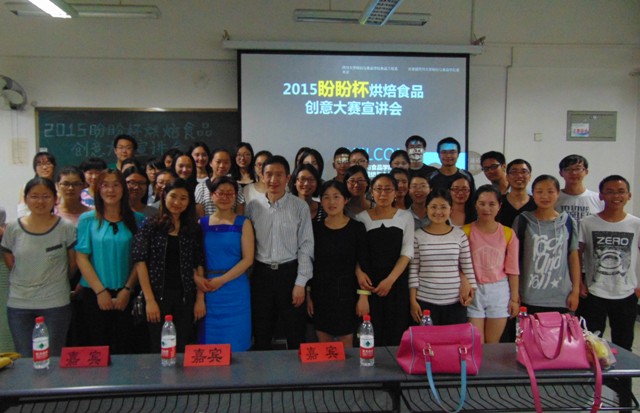 2015年4月28日19:20,2015年盼盼食品杯创意大赛宣讲会在四川大学江安校区第一教学楼A座218教室举办。本次比赛由中国食品科学技术学会和福建盼盼食品集团主办,四川大学轻纺与食品学院食品工程系、共青团四川大学轻纺与食品学院委员会、饮食文化协会和烘焙工艺技术协会共同承办。本次宣讲会的嘉宾有中国食品科学技术学会副秘书长郭勇先生,轻纺与食品学院副院长、食品工程系系主任何强教授、食品科学工程系副系主任贾利蓉副教授、食品工程系张佳琪、曾维才、李欣薇、何贵萍老师和2013级辅导员高江帆老师。