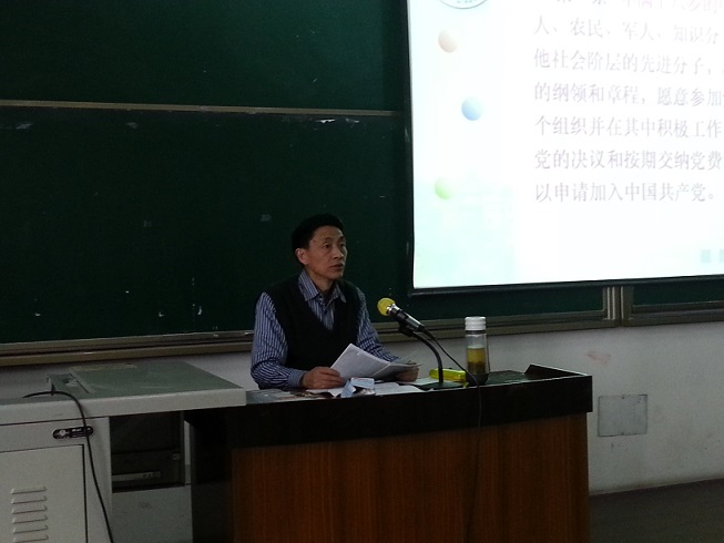 2014年3月23日下午16:00,轻纺与食品学院第136期入党积极分子培训班第二课在江安校区综合楼C307顺利举行。本次党课邀请到四川大学党校教授、原党委办公室主任张诚教授为全体学员讲解了《党员的基本条件》一课,本课程由轻纺与食品学院学生科科长冯国涛老师主持。