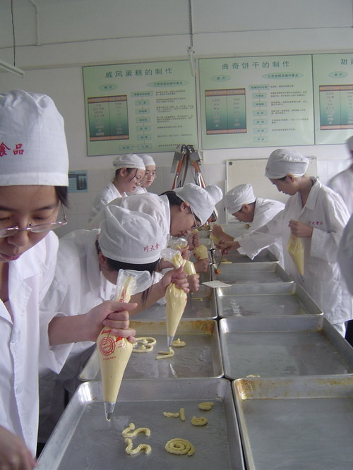 本次比赛分两场进行,第一场从早上9:00开始,第二场从14:00开始。在进入实验室前,选手们认真听取了吕老师的报告及实验要求的注意事项,吕老师还现场为同学们演示了曲奇饼干的制作工艺及流程,并为选手配制好材料。选手们自己操作阶段是整场比赛的高潮,各种形状、大小的曲奇很快在选手的手下诞生。等拿入烤箱烤制成熟后,还未取出就已经是香气四溢。品尝着自己制作的曲奇饼干,每个人的心里都非常开心与甜蜜,并在活动结束后留影纪念。