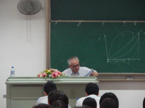 2点50分,段镇基院士在轻纺与食品学院院长陈武勇教授和院党委副书记刘晓虎老师的陪同下进入报告会会场,同学们随即报以热烈的掌声欢迎段院士的到来。