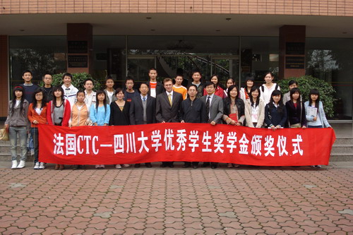 2007年10月12日14:30,法国CTC—四川大学优秀学生颁奖典礼在皮革楼报告厅举行。参加本次颁奖典礼的有法国CTC皮埃尔总经理、CTC上海市场部刘经理、陈武勇院长、革制品设计方向教研室主任徐波老师以及革制品方向的全体获奖同学。