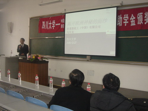 科莱恩国际有限公司是世界著名的化工制造企业-瑞士科莱恩(前Sandoz)有限公司下属的子公司。公司每年在全球范围内的销售额近60亿美元,三万多名员工遍布世界五十多个国家。科莱恩公司目前在中国用有四家独资和合资企业,在上海、北京、广州和香港建立了独资公司和代表处,在上海设有造纸化学品实验室。该公司于2005年10月在四川大学设立了实习奖学金。该奖学金也是四川大学首个专门针对学生创新实践能力培养的一项奖学金,大大加强了学生动手能力的培养。