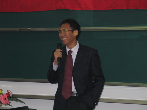 颁奖典礼开始之前,瑞士科莱恩国际有限公司北京办事处皮革部北方市场部经理马军龙先生给全体学生作了关于欧洲各国皮革行业现状的精彩报告,他的精彩的演讲引起了众多皮革学子对国外皮革业现状的浓厚兴趣,赢得了同学们阵阵掌声。