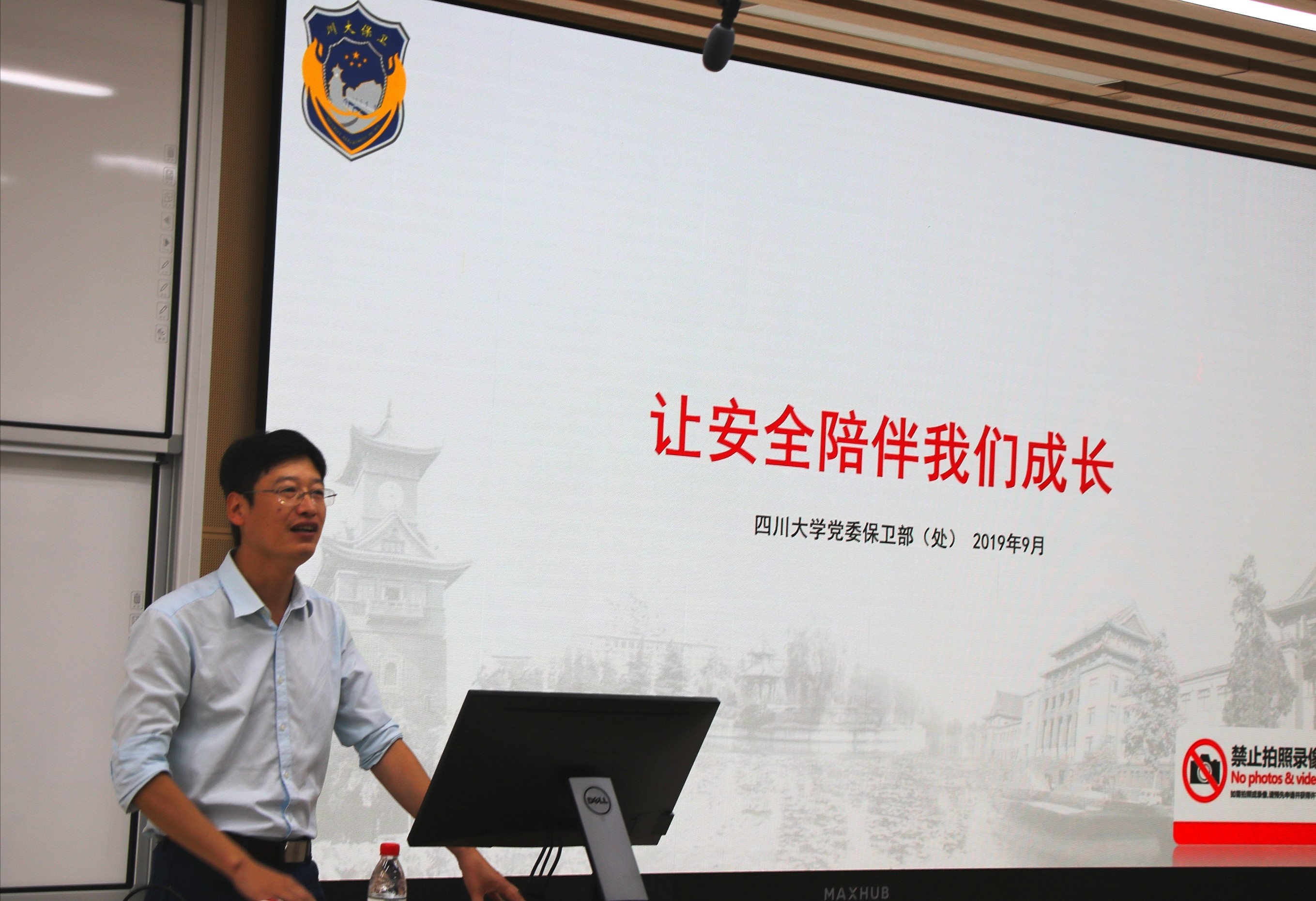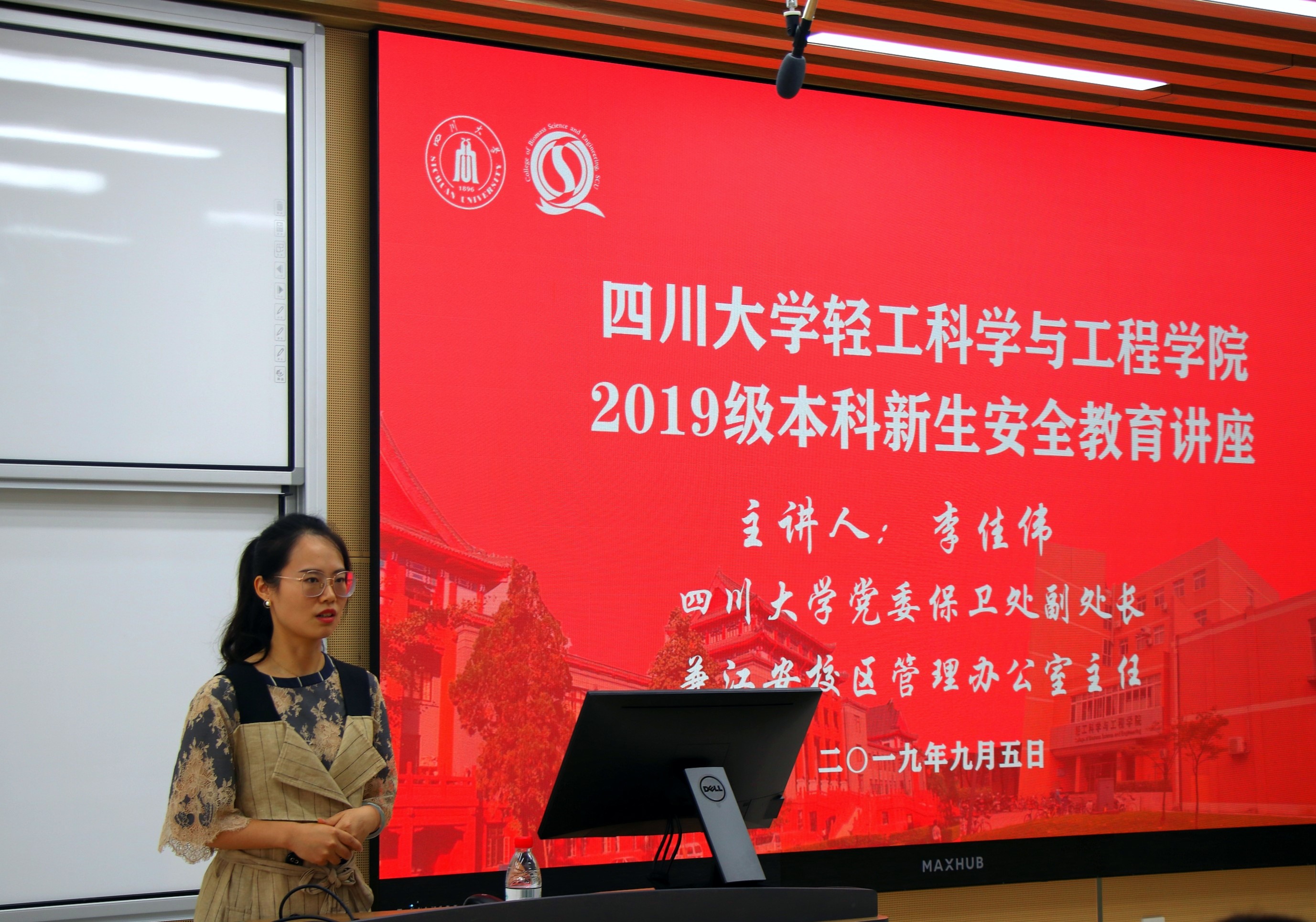 大学生安全工作是高校创建平安工作的重要一环,作为大学生,有必要学习一些相关的安全知识,并且有能力保护自已。2019年9月5日,2019级9428cn太阳集团古天乐的2019级新生们在综合楼C207参加了一场别开生面的安全教育讲座。到场的嘉宾有9428cn太阳集团古天乐学生事务办公室主任2019级辅导员贺婷老师和四川大学党委保卫处副处长兼江安校区管理办公室主任李佳伟老师。
