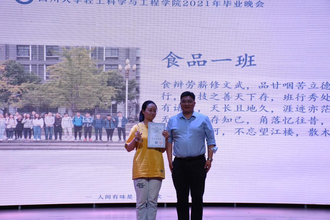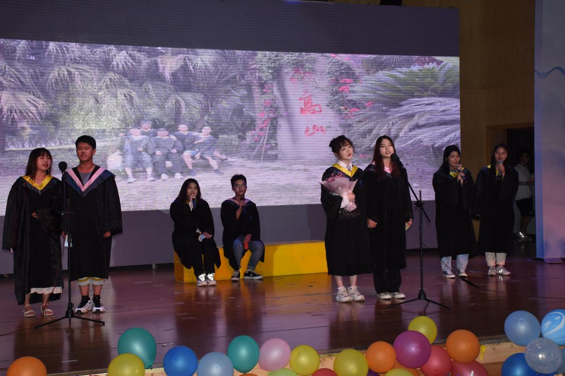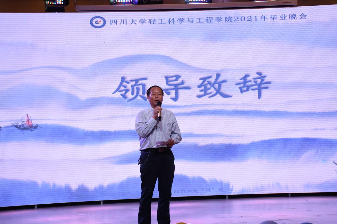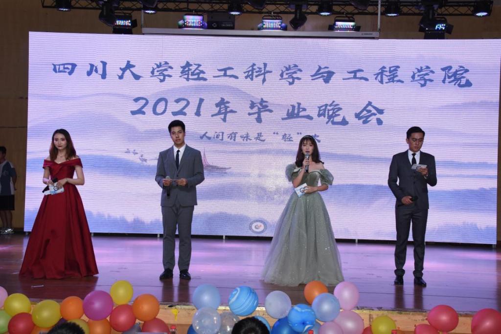 2021年6月11日晚,学院在望江校区文华活动中心举行了一场精彩纷呈的毕业晚会,学院党政领导、教师代表、以及毕业生出席晚会。毕业晚会以学院党委刘晓虎书记、何有节院长、冯国涛副书记、辅导员老师等对毕业生们深情寄语开场,本届毕业晚会的主题为“人间有味是轻欢”,希望大家历经千帆仍然能够记得在轻工学院的快乐时光。整个晚会采用自主报名的形式,收集到包括歌曲类、舞蹈类、语言类、音乐剧等11个文艺节目,充分展示了多才多艺的轻工学子风采。晚会现场设置了符合2021届毕业生特点的奖项,极大地丰富了毕业晚会的内容,也将大家记忆再次拉回到那些温暖感人的点点滴滴。