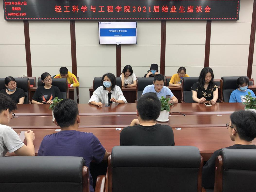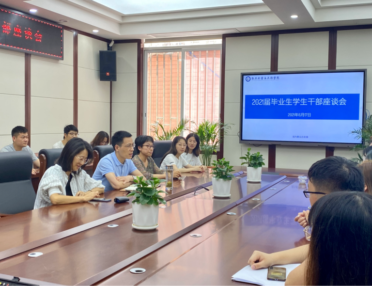 为进一步做好我院教学、管理、服务工作,2021年6月17日下午,学院在纺工附楼205会议室分别召开了“毕业生学生干部座谈会”和“结业生座谈会”。学院党委冯国涛副书记和辅导员老师出席了下午座谈会,冯老师以“一个感谢、一个拜托、一个希望”寄语毕业生干部,感谢全体学生干部在大学四年为班级作出的贡献,拜托站好最后一班岗,并殷切希望毕业生们在学习和事业上都有很好的发展,将学生干部的职责延续下去,维系班级友谊,做好未来校友工作。