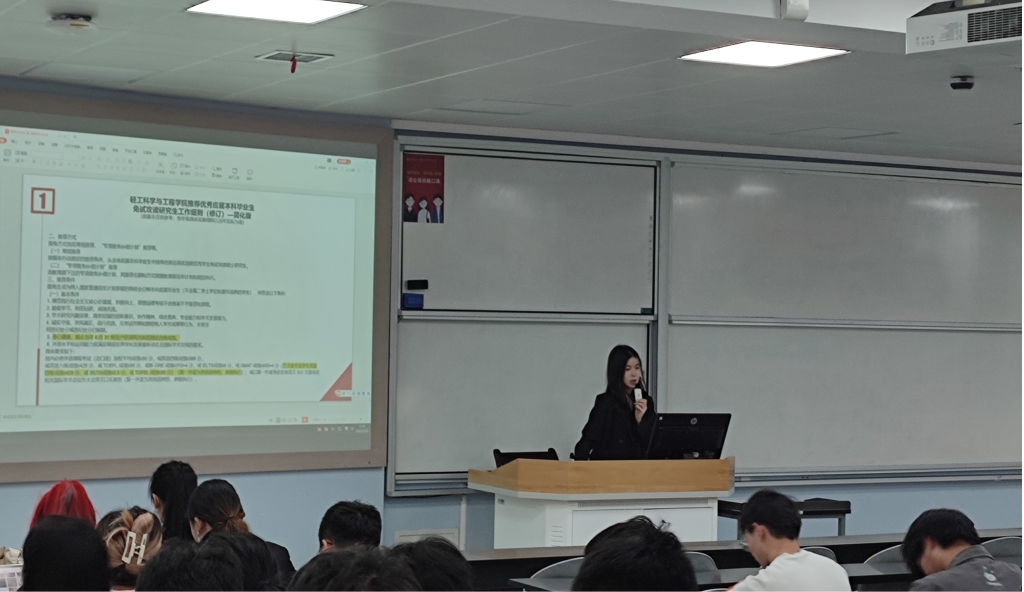 2022年3月25日下午,由思学中心主办的2022年保研分享会在江安一教B207教室举行。出席本次分享会的嘉宾有2020级本科生辅导员余昕玲老师、思学中心朋辈导师侯静雯和燕彤彤学姐,以及2020级全体本科生。分享会由思学中心宣传委员、2021级本科生周琳森同学主持。