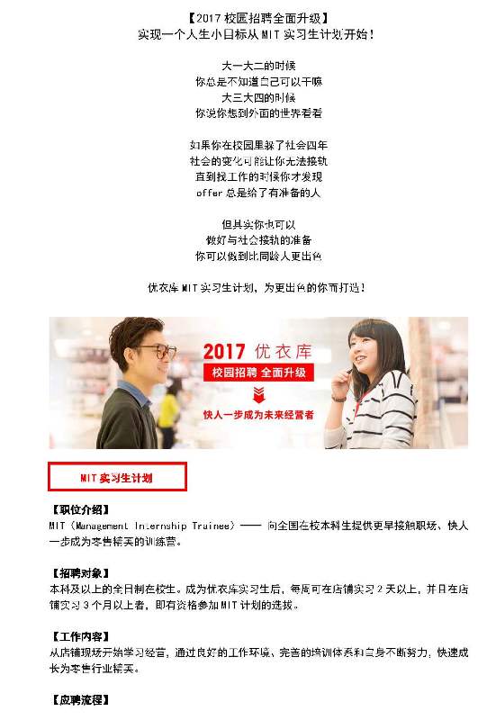 优衣库MIT招聘简章