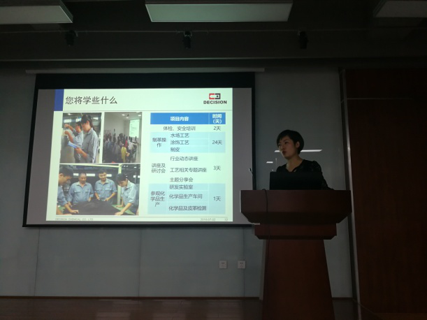 宣讲会由何有节院长主持。何院长代表院系欢迎德赛尔公司客人的光临,感谢公司为学院本科及研究生提供实习岗位,回顾了近几年学院皮革工程系轻化工程专业卓工班大三学生在德赛尔公司实习的情况,同时鼓励学生积极参加实习实践,全面提高自身综合能力。卢代虹助理经理介绍了公司的基本情况,龙进经理详细讲解了实习的主要内容和安排。据悉,本次德赛尔公司的暑期实习将吸纳四川大学、陕西科技大学和北安普顿大学(The University of Northampton)的本科生和研究生参加,实习地点在德阳,为期6周。与会学生积极与公司客人互动,咨询实习等相关情况。宣讲会后,卢经理和龙经理对已报名同学举行了面试。