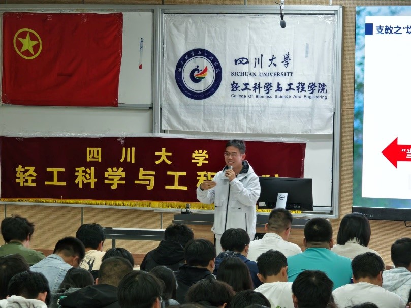 随后,周一山学长开展题为《做一朵接力盛开二十四年的索玛花》的分享。周学长首先就支教现状与同学们展开交流,强调国家扶贫之成效和支教意义之所在。“攀过心里那座山,找到山那边的海”周学长如是说道。他结合自身经历,指出实验是破解学习困难的金钥匙,因地制宜,因材施教,找准症结,改进方法,要以不畏艰辛,志愿奉献的精神去做好一件终身难忘的事,去种下一颗希望的种子。周学长的分享深入浅出而幽默诙谐,赢得同学们阵阵掌声。