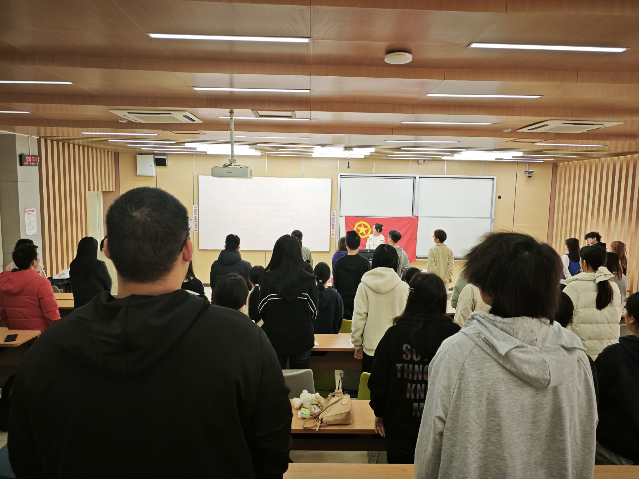 活动伊始,全体人员起立,庄严奏唱中国共产主义青年团团歌,旋律激昂,歌声嘹亮。