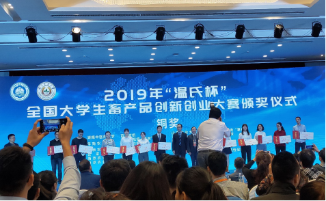 2019年9月25日,由教育部高等学校食品科学与工程类专业教学指导委员会、中国畜产品加工研究会、南京农业大学食品科技学院及广东温氏佳味食品有限公司联合主办的2019年“温氏杯”全国大学生畜产品创新创业大赛,在南京农业大学隆重举行。四川大学、浙江大学、中国海洋大学、江南大学、南京农业大学等三十多所高校的师生共四十三个作品参加了本次终审决赛。经过激烈的角逐,我院食品科学与工程专业段飞霞老师指导的“蛋蛋冻”产品研发团队在本次比赛中取得全国铜奖的佳绩。