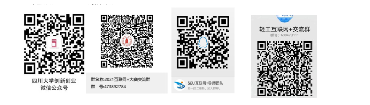 (2)四川大学第七届“互联网+”大学生创新创业大赛官方QQ群号:473892784(学生群),228558107(教师群);