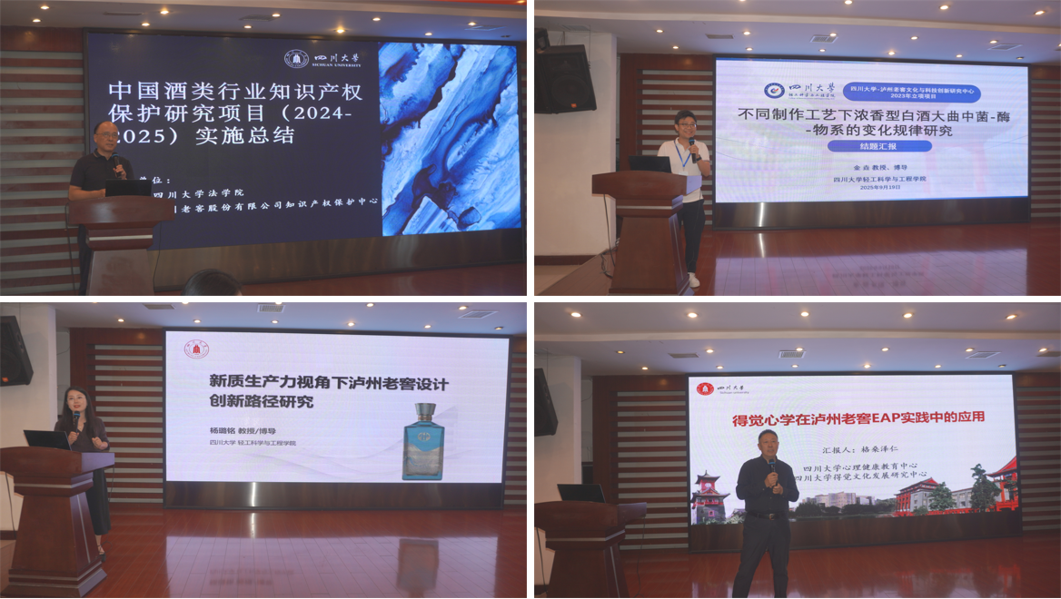 会上,刘晓虎副书记介绍了四川大学与泸州老窖近年来的合作成效。他表示,泸州老窖与四川大学自2022年共建文化与科技创新研究中心以来,坚持优势互补、协同创新,在科研与产业融合方面取得显著成果。这些扎实的合作成果为中国白酒为代表的酿造食品产业的高质量发展与文化传承提供了重要支撑,也为双方进一步深化合作奠定了坚实基础。此后,9428cn太阳集团古天乐副院长、研究中心主任迟原龙教授向大会作了研究中心年度工作汇报。
