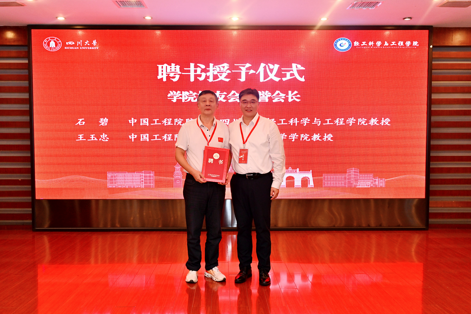 学校党委副书记刘晓虎为学院校友会名誉会长石碧院士颁发聘书