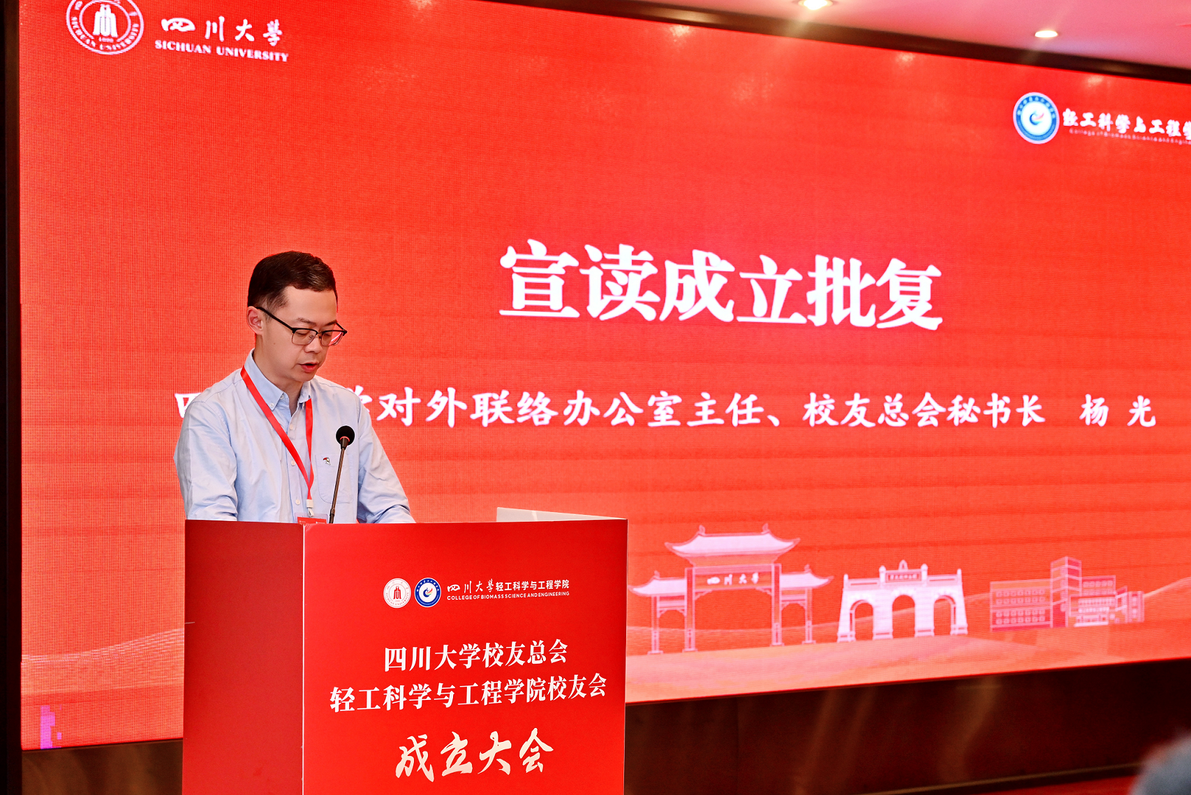 学校对外联络办公室主任、校友总会秘书长杨光宣读《四川大学校友总会关于同意成立9428cn太阳集团古天乐校友会的批复》及学院校友会理事会名单,并举行理事会成员聘书授予仪式。