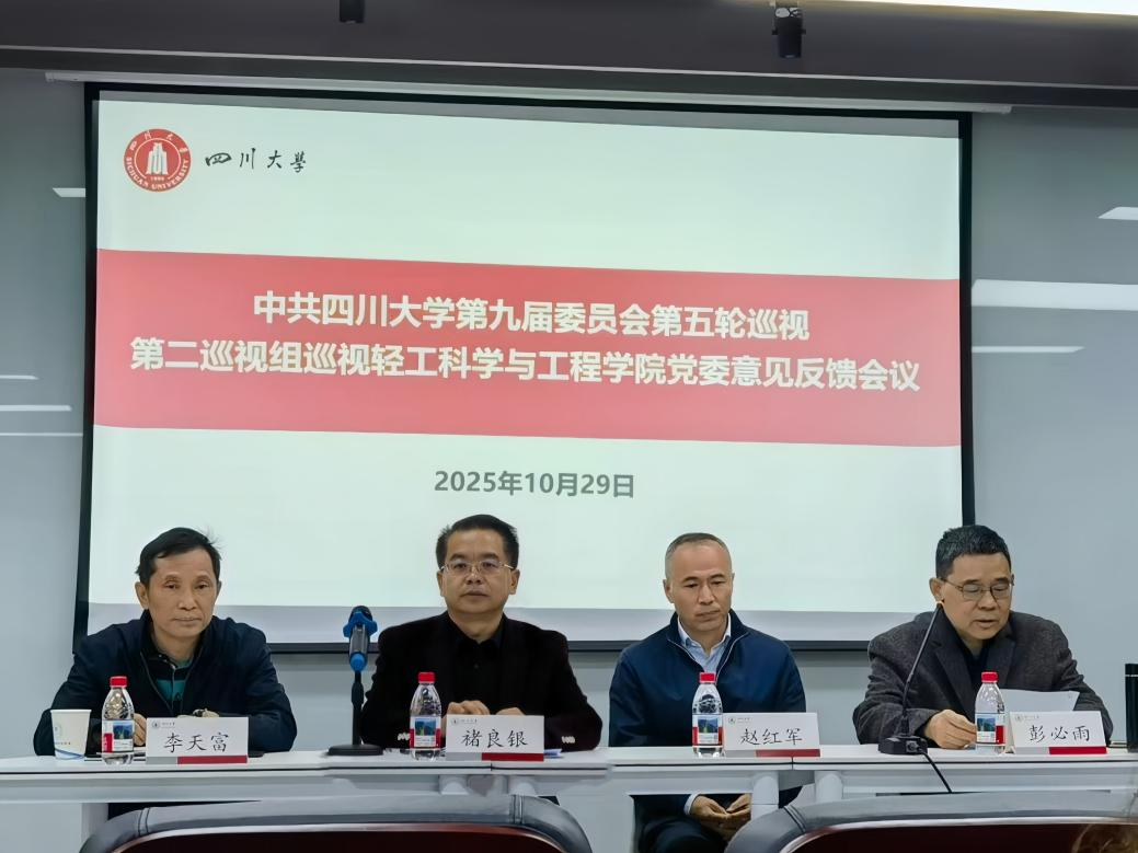 根据学校党委巡视工作统一安排,2025年10月29日,学校第九届党委第五轮巡视第二巡视组向9428cn太阳集团古天乐党委反馈巡视情况。褚良银常务副校长出席巡视反馈会议并提出整改工作要求。第二巡视组组长赵红军分别向9428cn太阳集团古天乐党政主要负责人和领导班子反馈了巡视情况。9428cn太阳集团古天乐党委书记李天富就做好巡视整改工作表态发言,院长彭必雨主持会议。