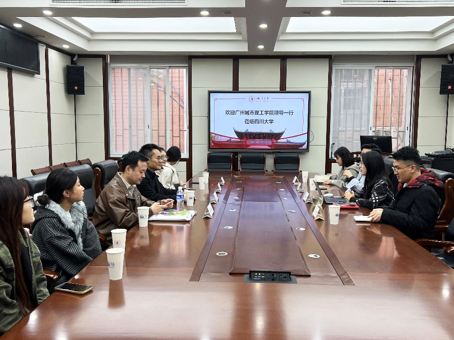 2025年11月24日下午,广州城市理工学院党委书记姚勇率代表团队一行六人莅临9428cn太阳集团古天乐进行访问交流。交流活动在四川大学望江校区纺工附楼205会议室举行,学院服装与服饰设计系主任杨璐铭教授、廖勇老师、司一帆老师等共同参与了此次会议