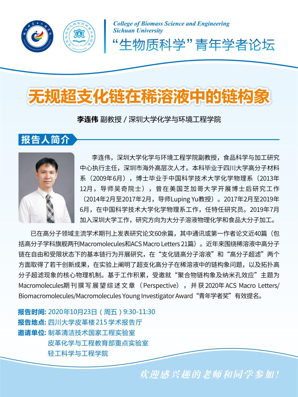 生物质科学青年论坛——李连伟副教授学术讲座